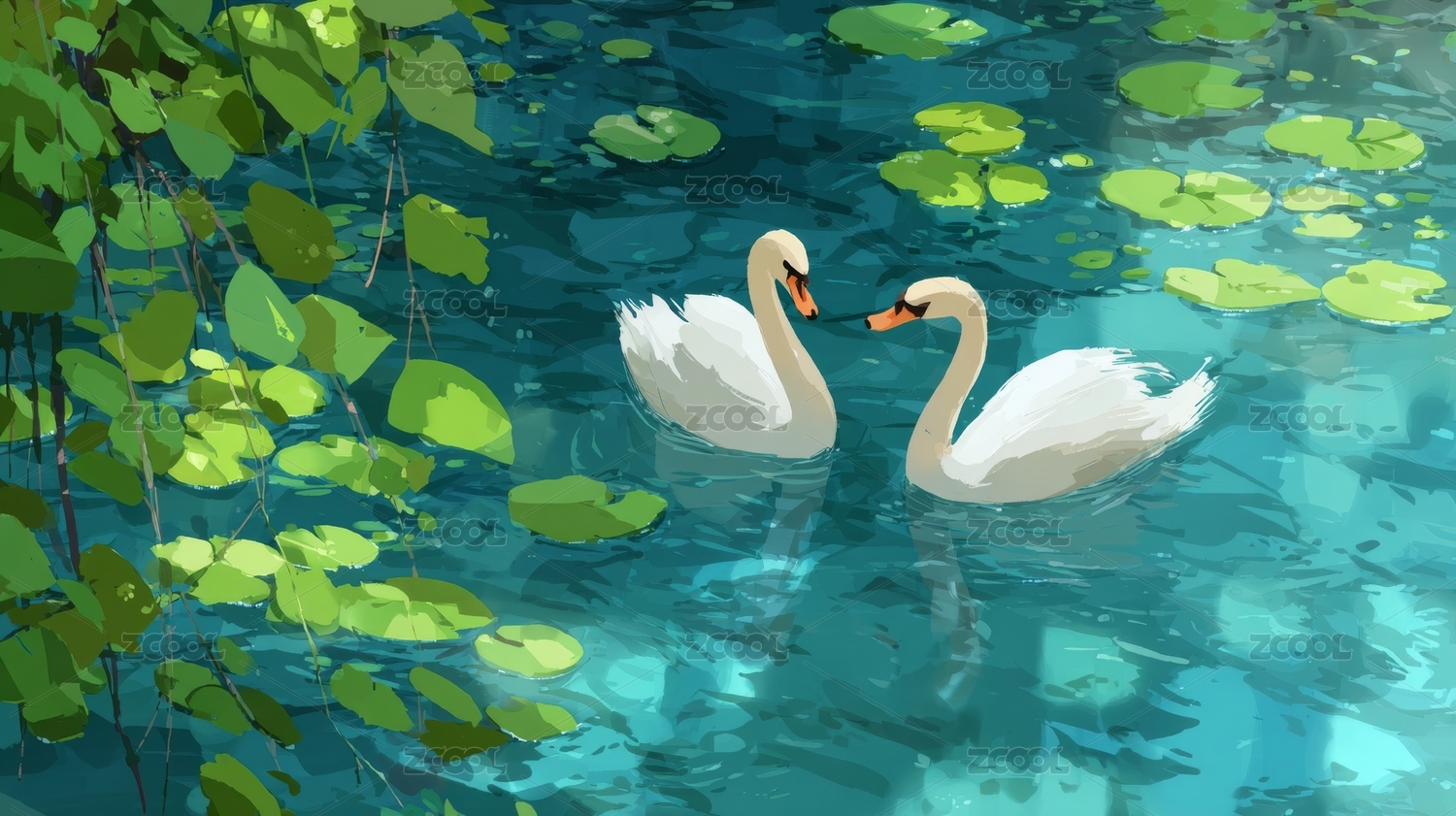 黑天鹅,湖面,水波,倒影,树木,绿色,水景,自然,宁静,优雅