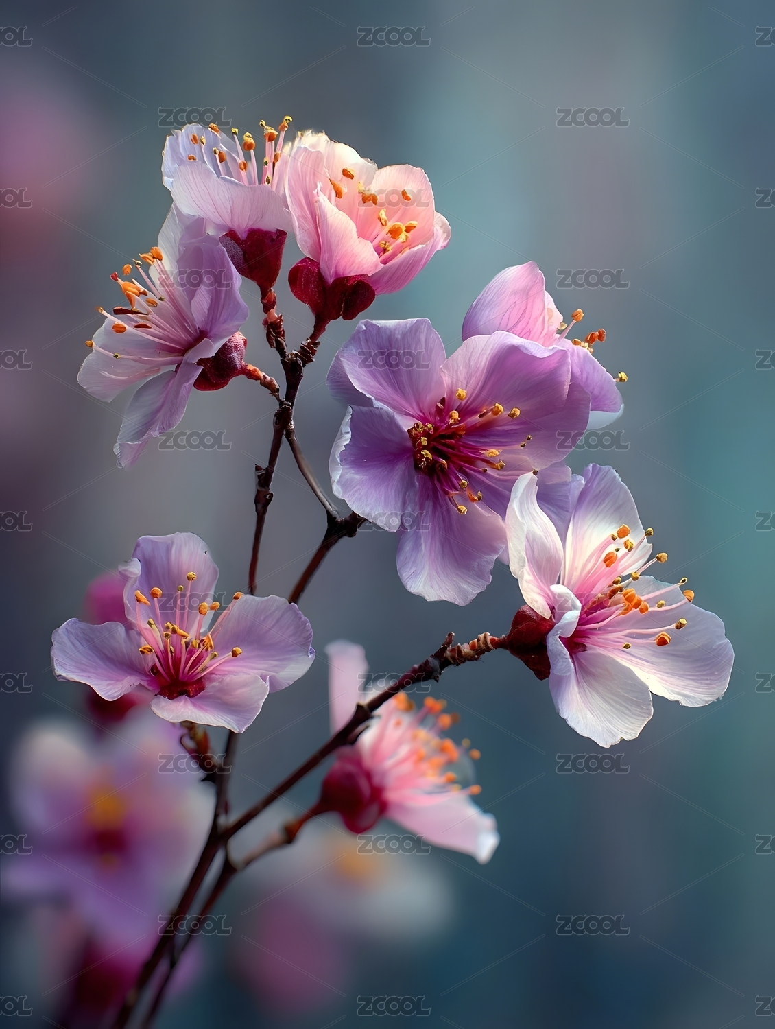 粉紫色樱花绽放特写