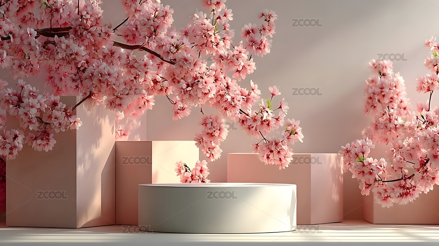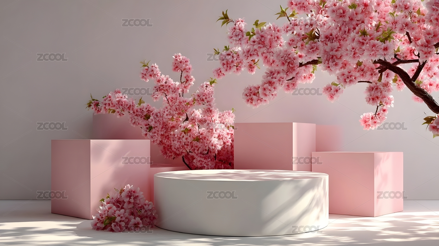 樱花盛开的粉色展示台