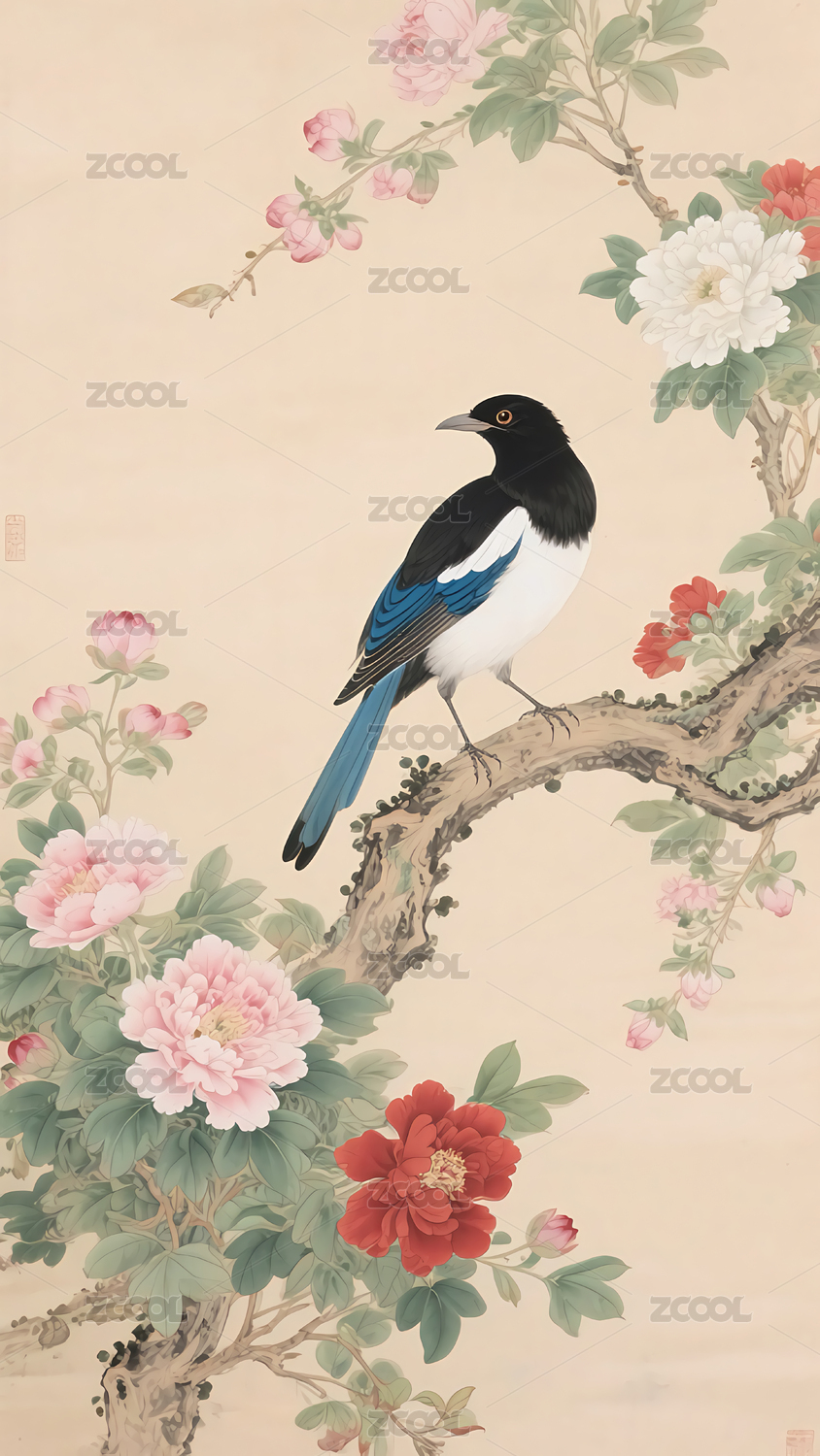 水墨画,动物,小鸟,壁纸,国画,写意,背景,植物,树木,花朵