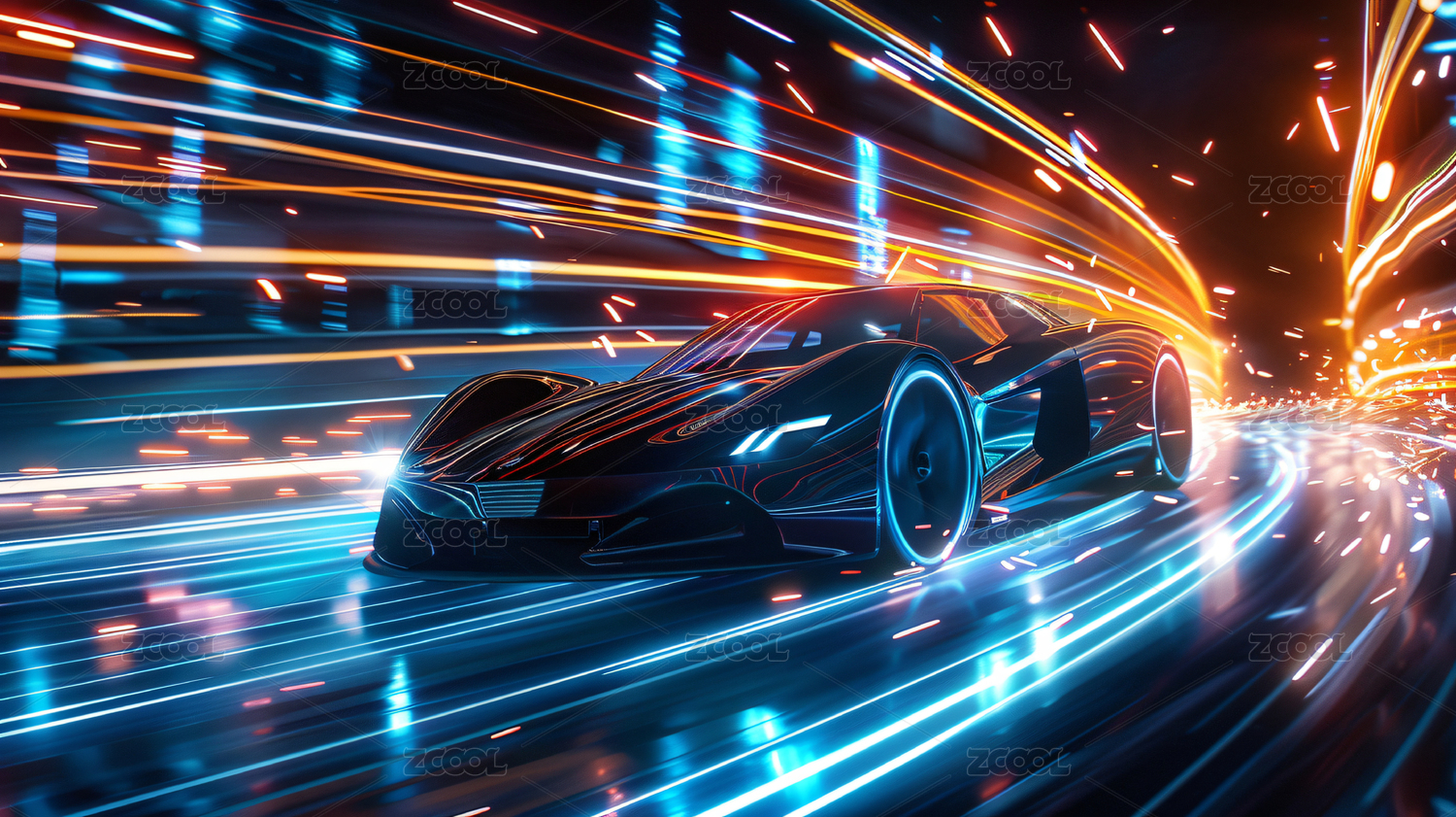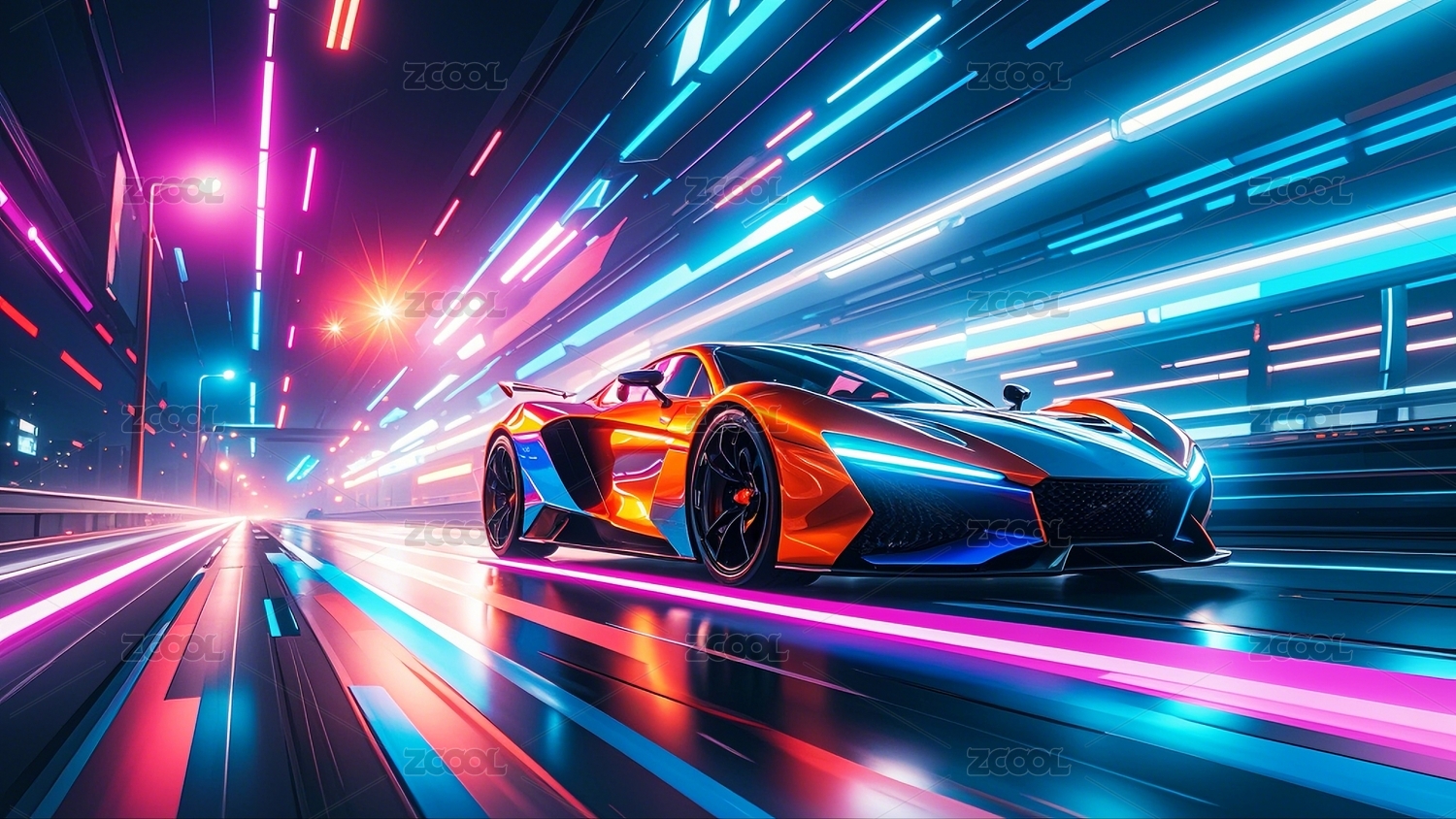 未来,隧道,新能源,汽车,跑车,赛车,三维,场景,赛博朋克,霓虹灯