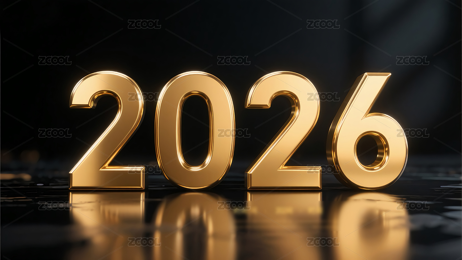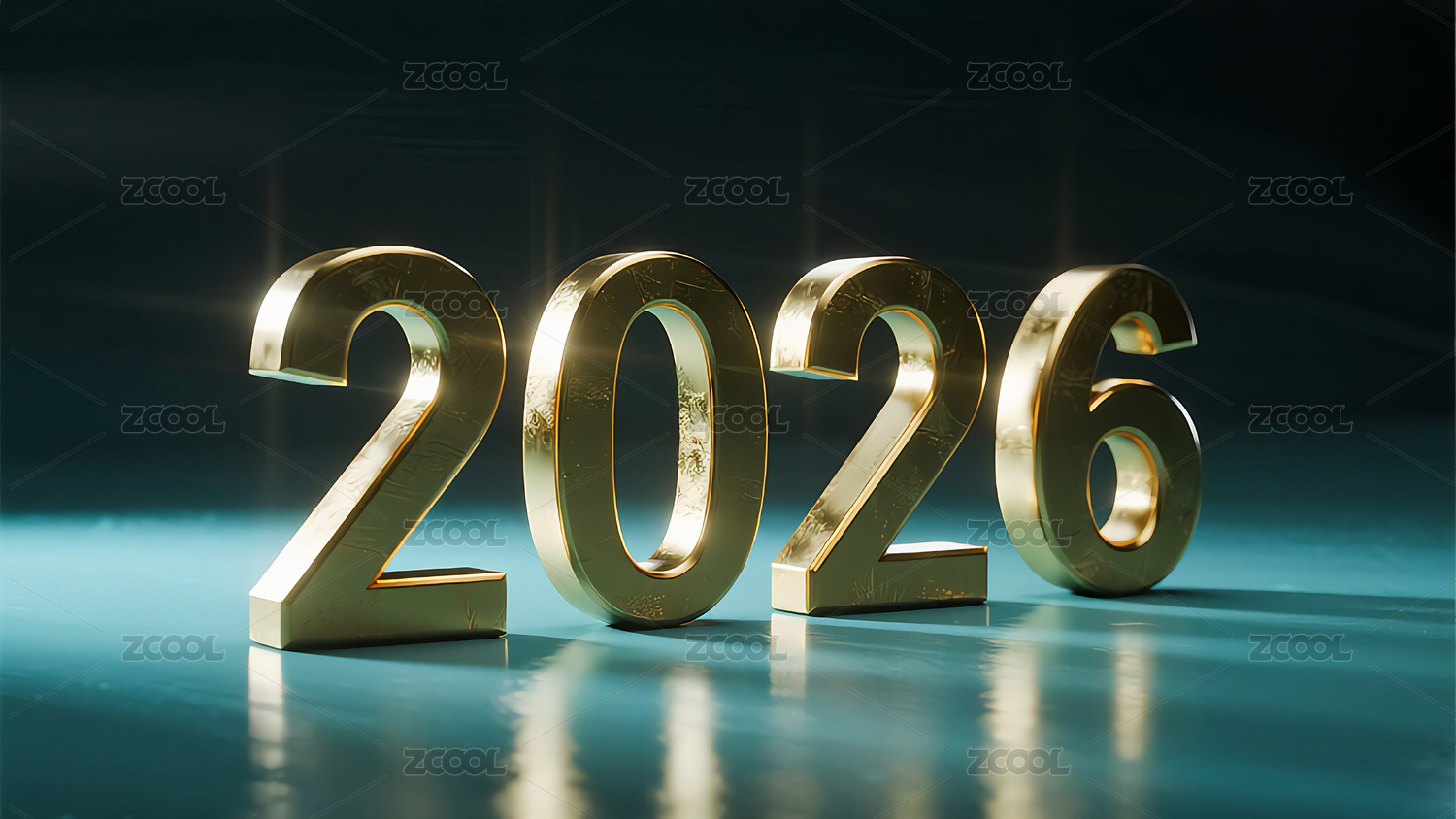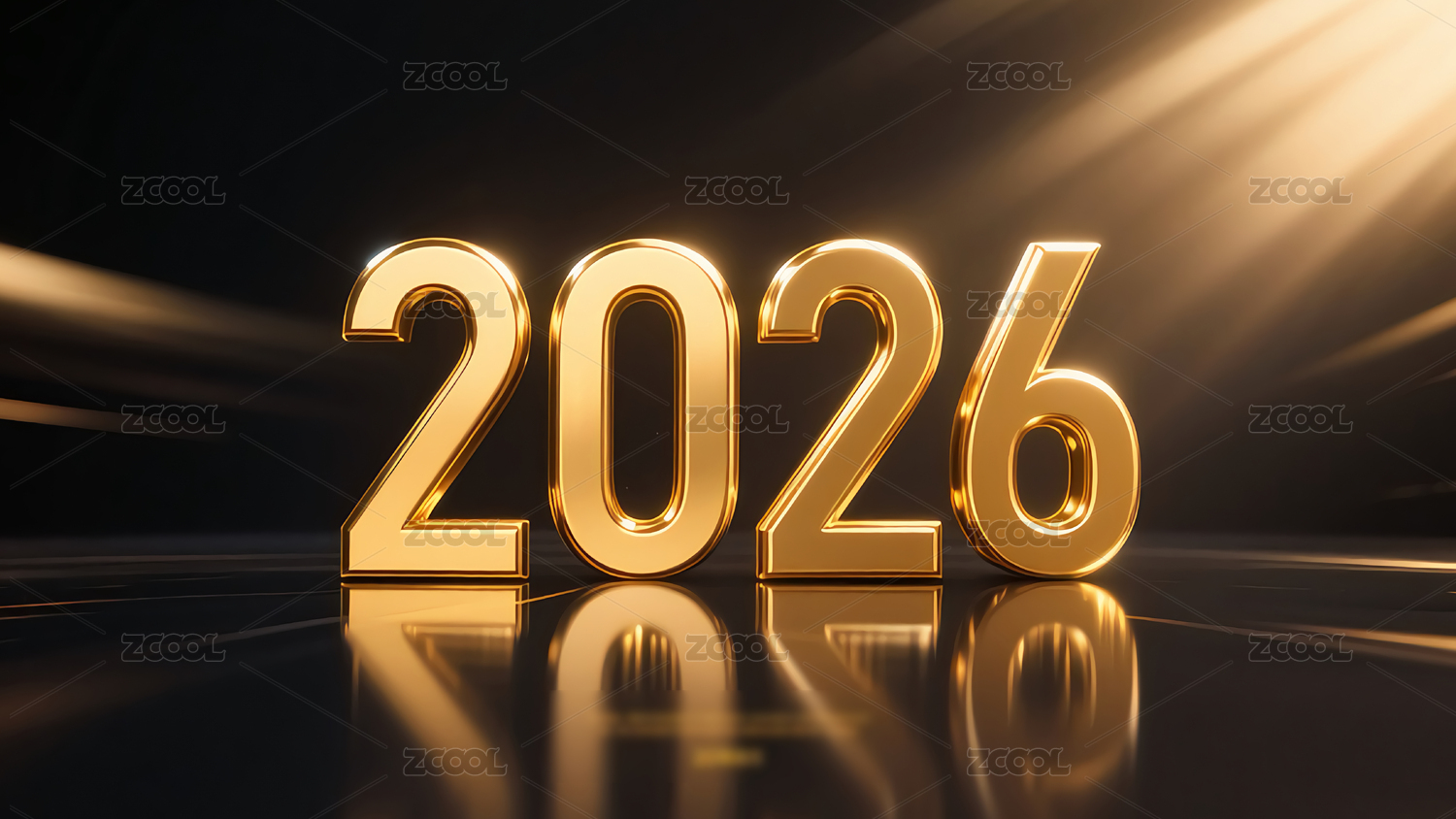 黄金,数字,2026,金色,光芒,背景,三维,场景,空间,3D