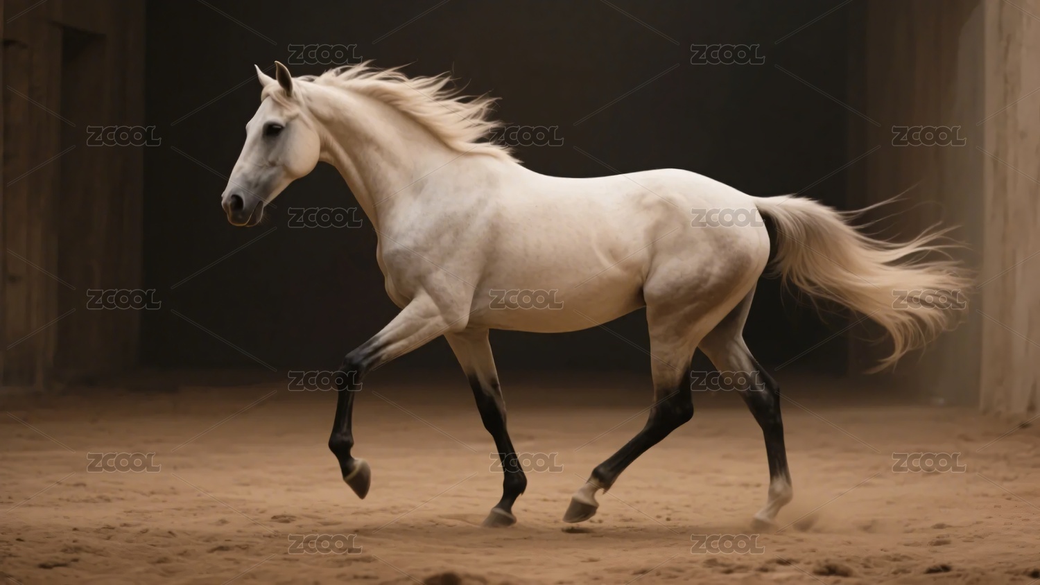 白马,站立,黑鬃毛,沙漠,背景,插画