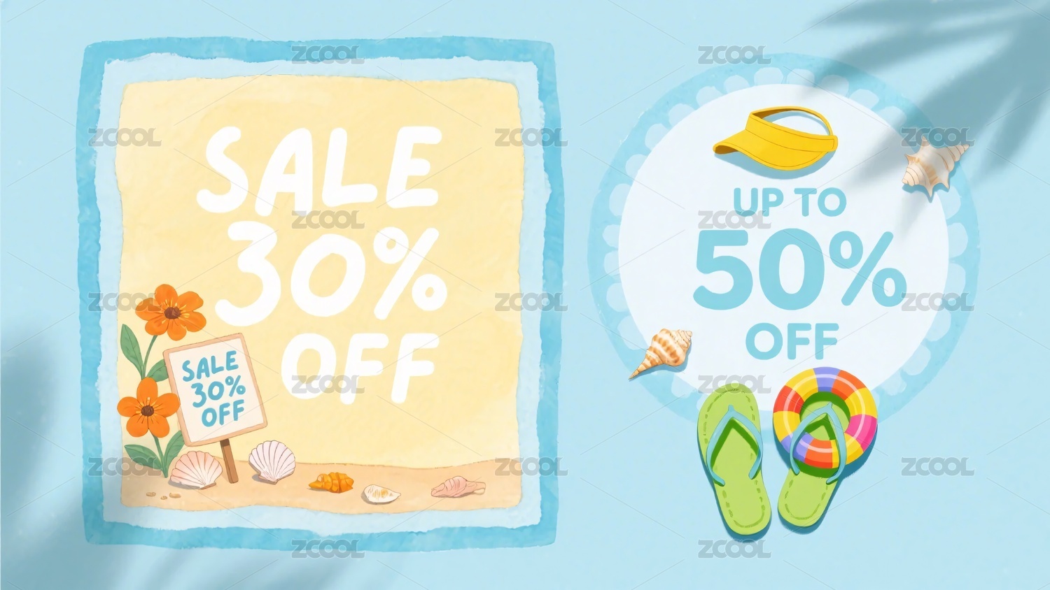 夏日沙滩促销场景插画