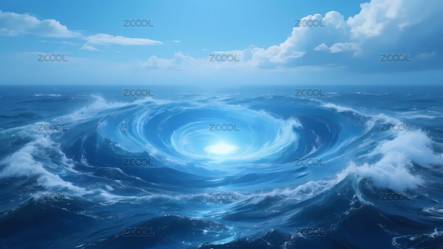 漩涡,深蓝,自然,海洋,波浪,天空,云朵,壮观,神秘,力量