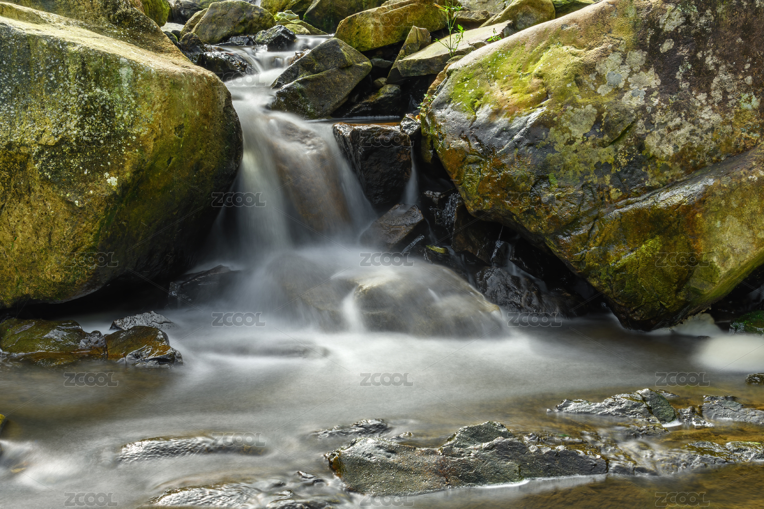 溪流,流水,石头,岩石,苔藓,绿植,植物,清澈,水,蓝色