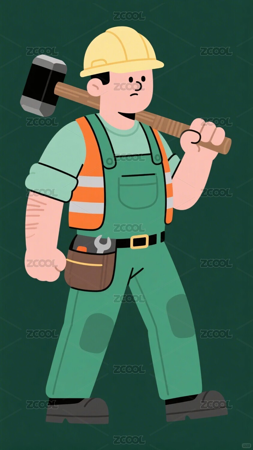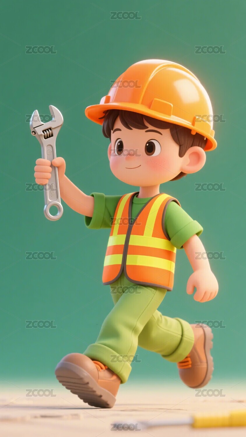 卡通工人,安全帽,扳手,插画,工作服,手套,工具,矢量,人物,主题词