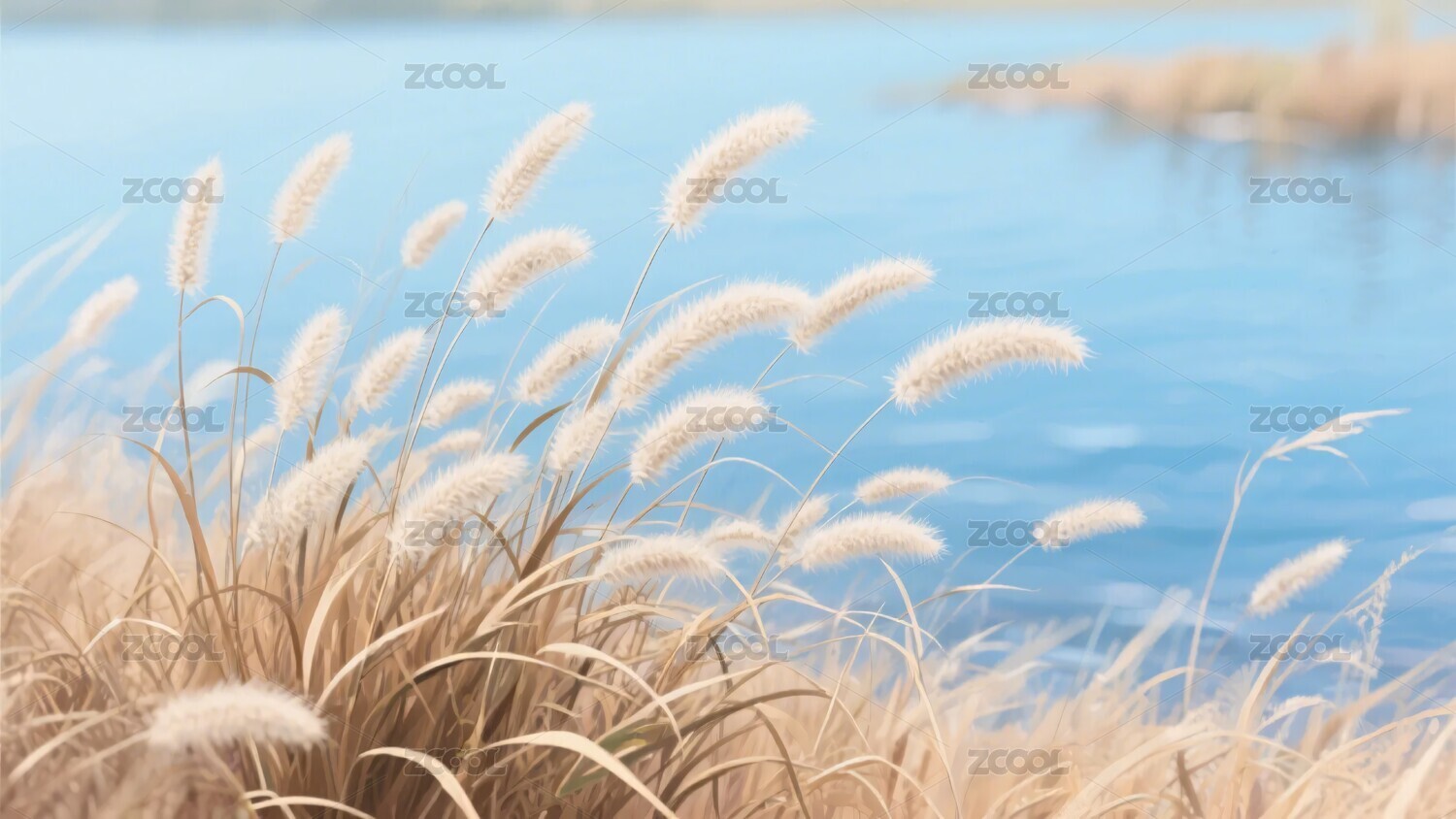 蒲苇,自然风景,插画,植物,蓝色,美景,艺术,矢量,景观,宁静