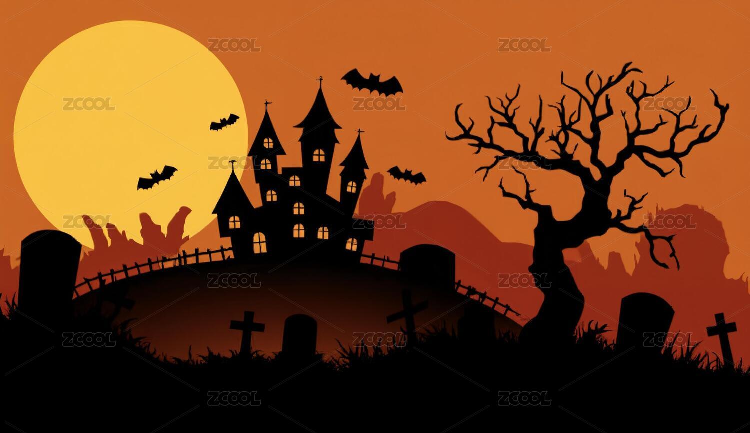 万圣节,城堡,墓地,蜘蛛网,阴森,节日,秋季,黑暗,诡异,十字架