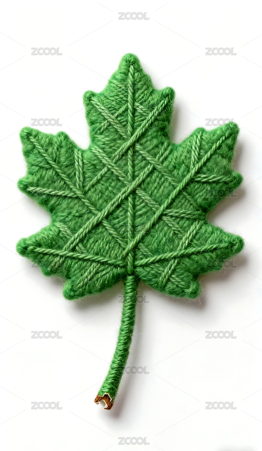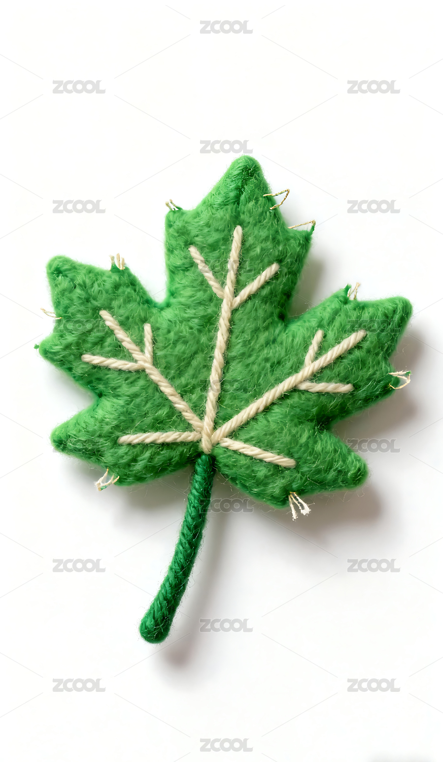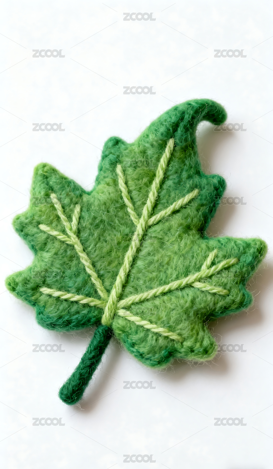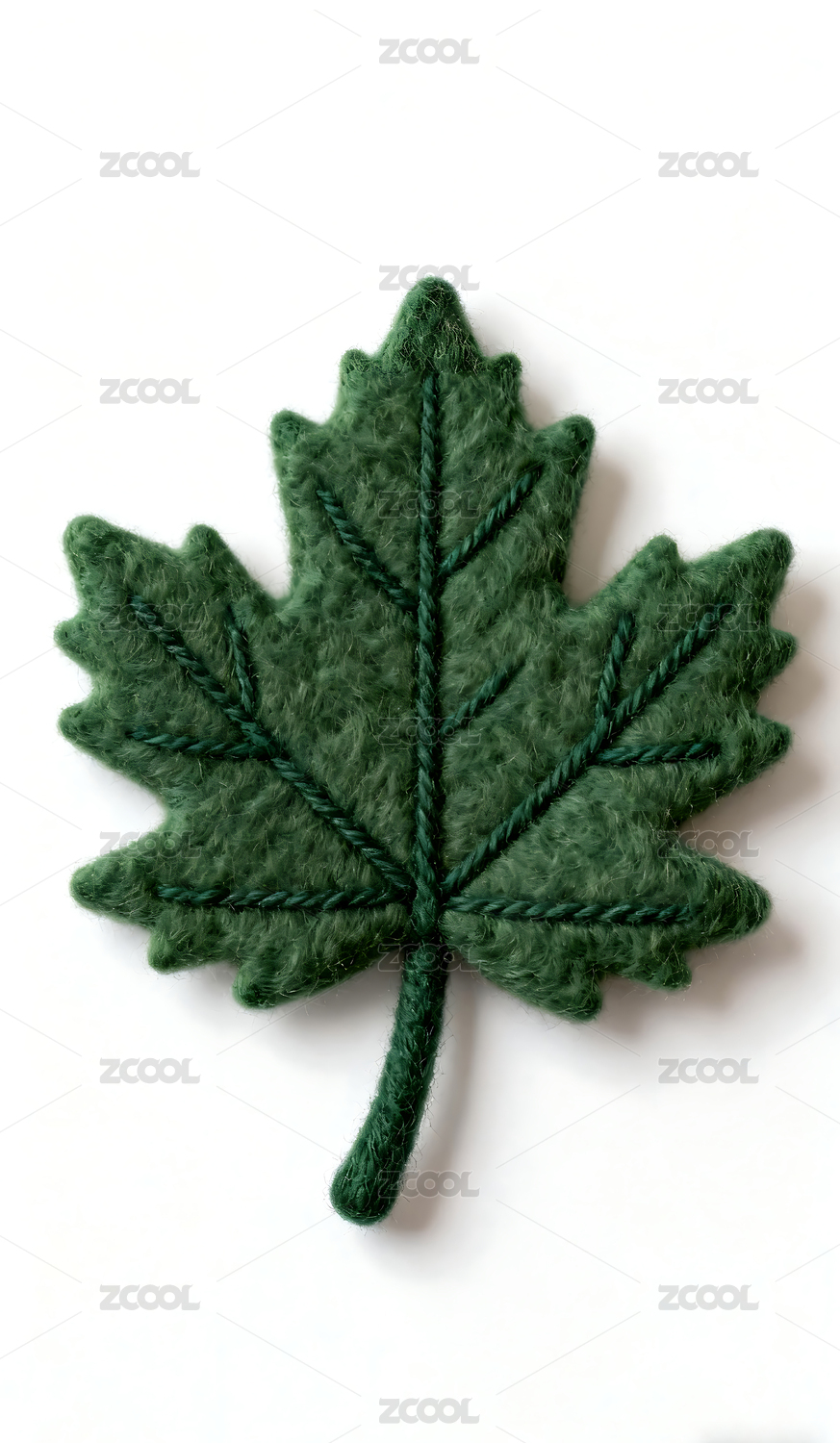 3D羊毛毡毛绒绒质感绿色梧桐树叶模型