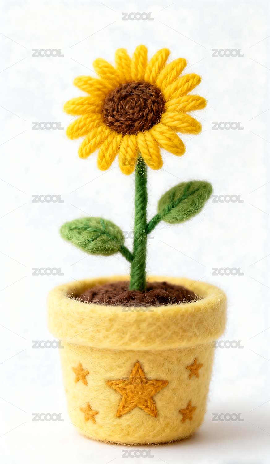 3D,羊毛毡,毛绒绒,毛茸茸,模型,玩偶,植物,盆栽,向日葵