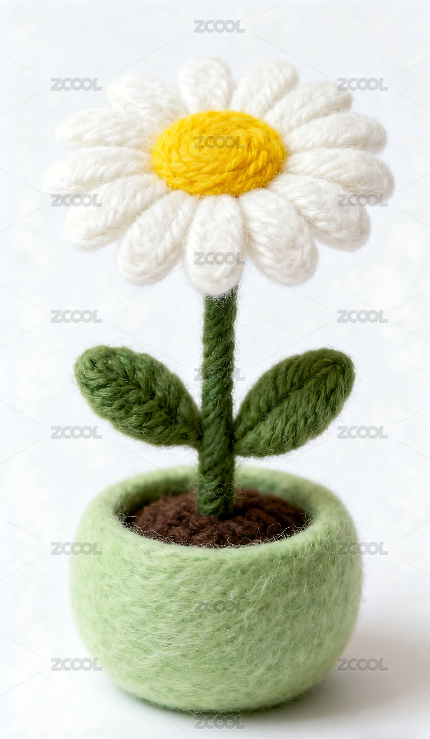 3D羊毛毡毛绒绒质感菊花盆栽模型