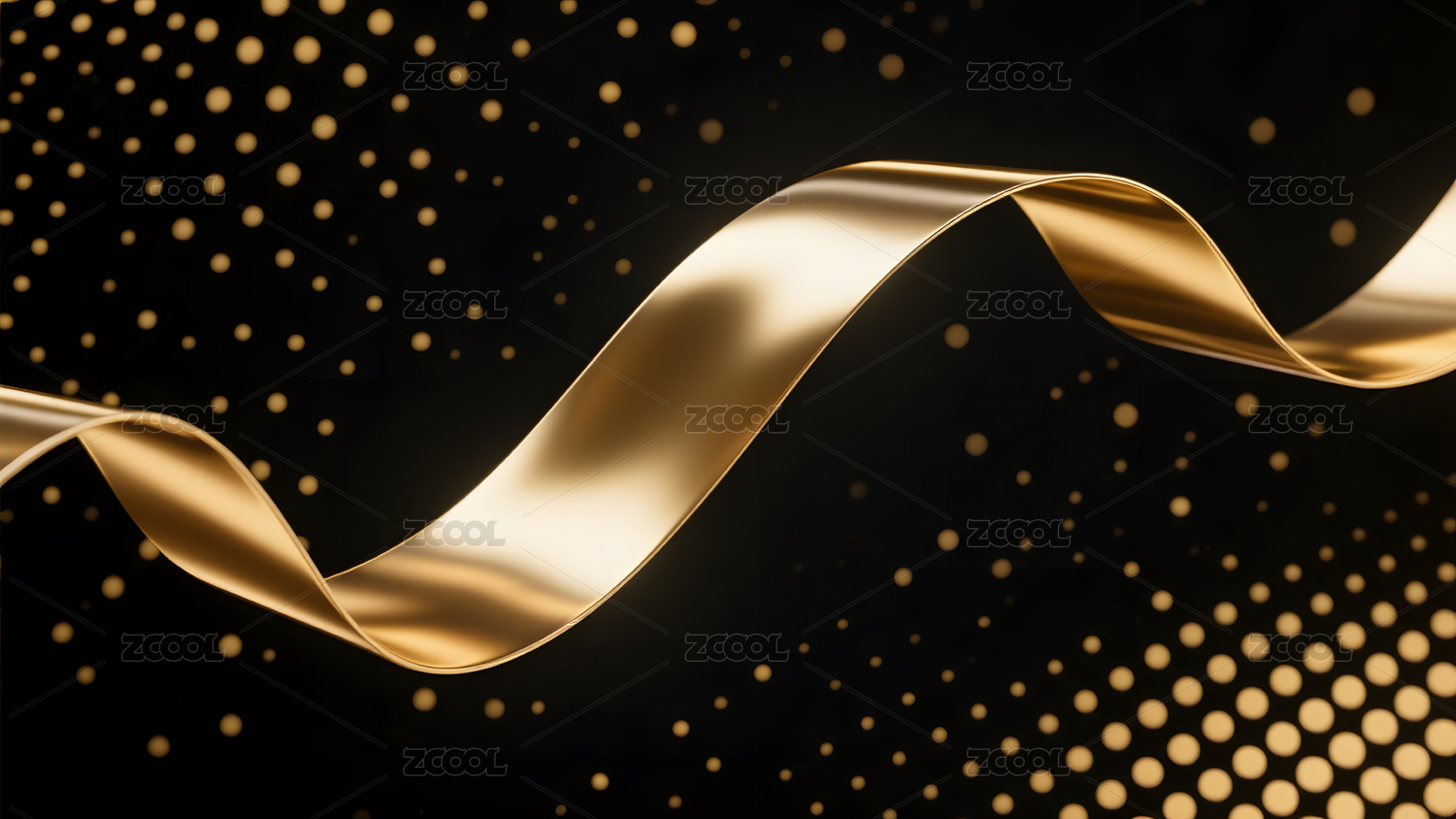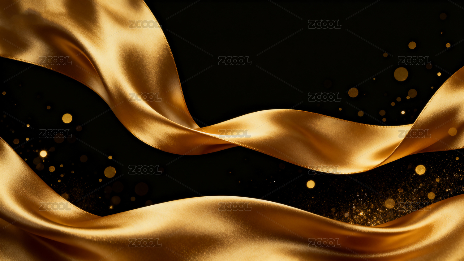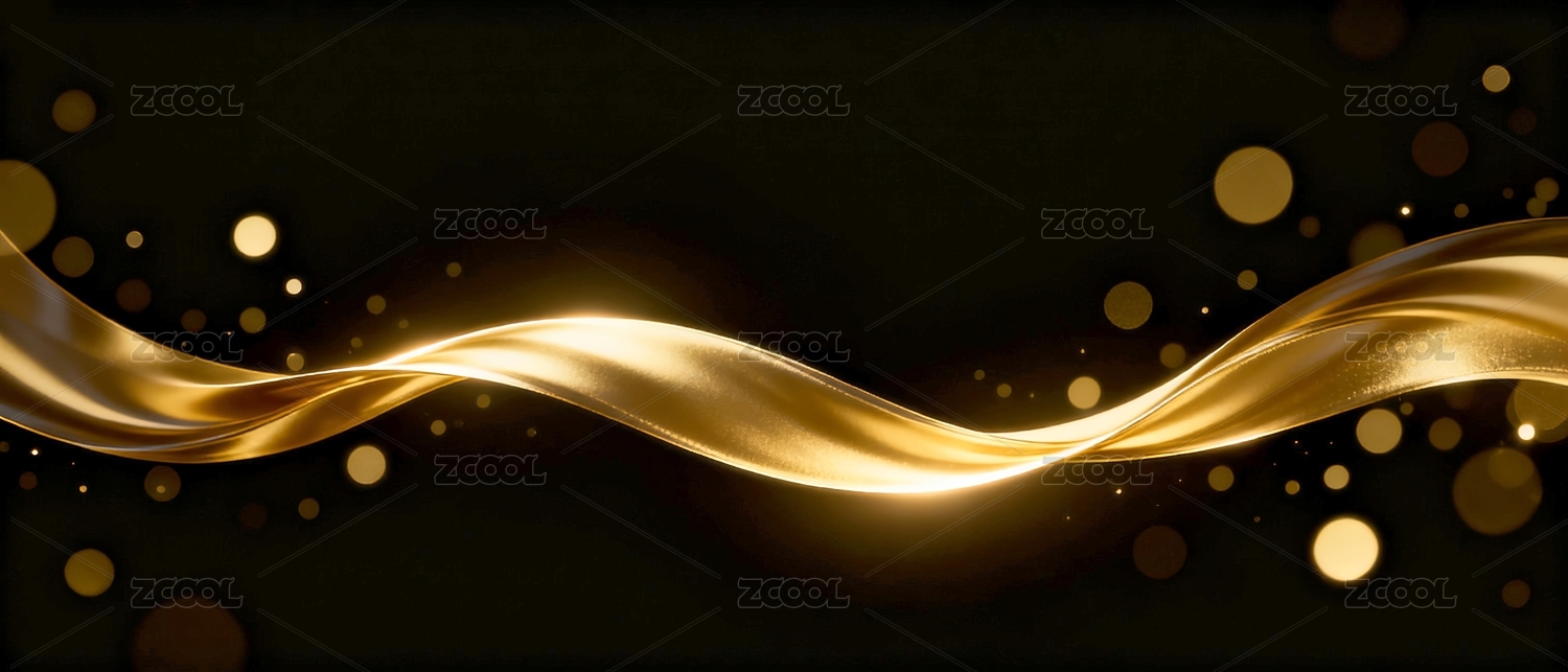 金色飘带在黑色背景中闪耀