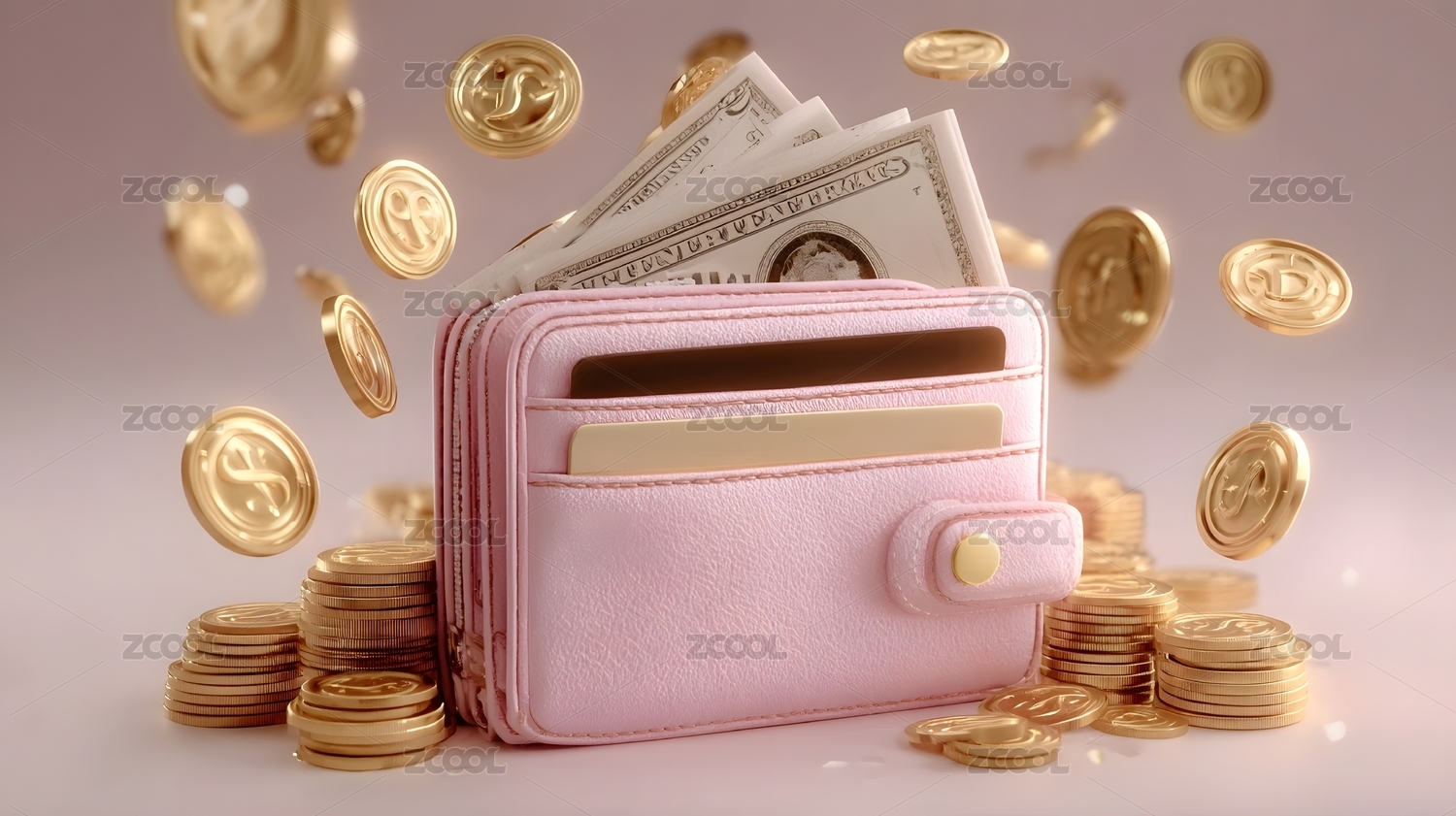 粉色钱包与金币