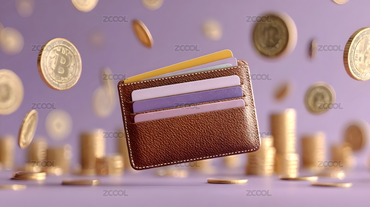 紫色钱包与金币飞舞