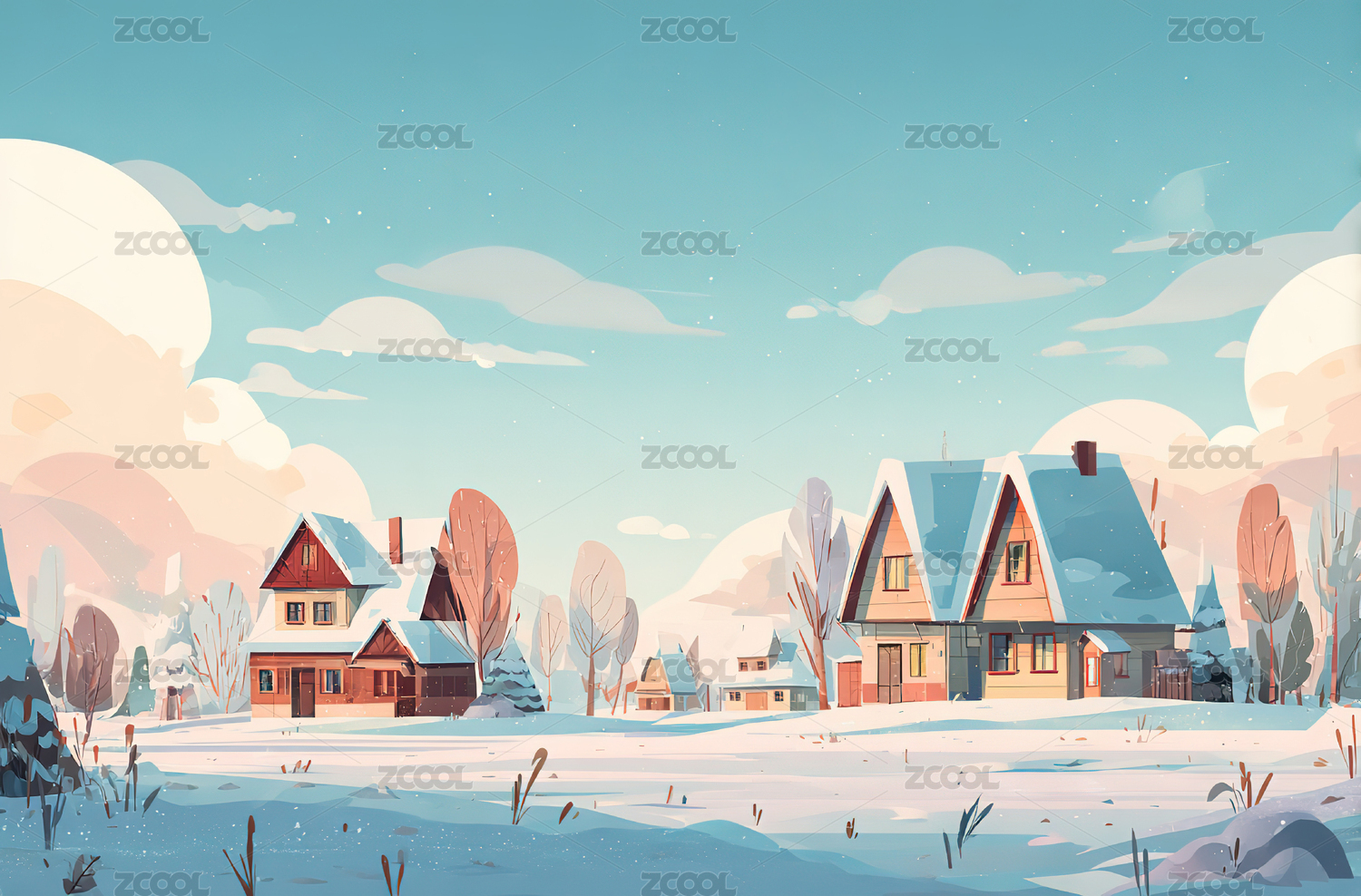冬天雪地插画背景图
