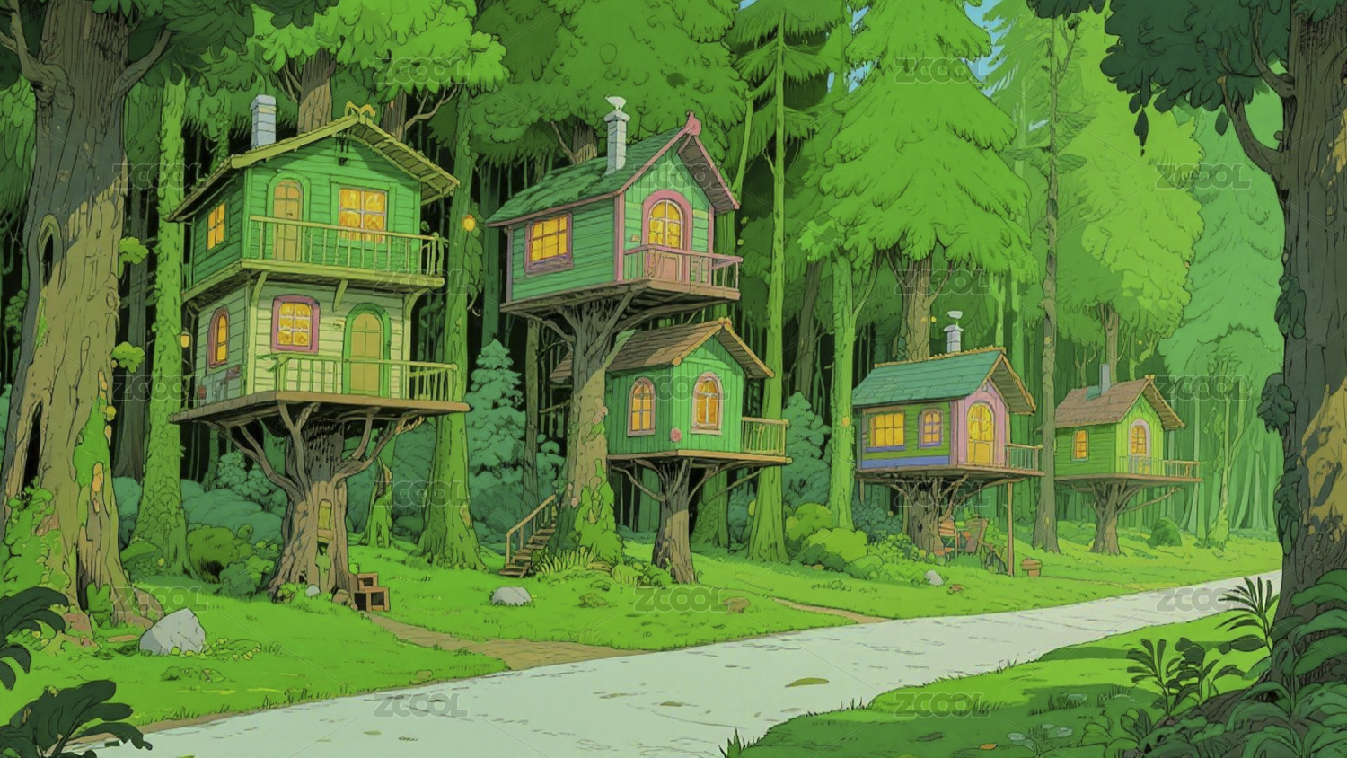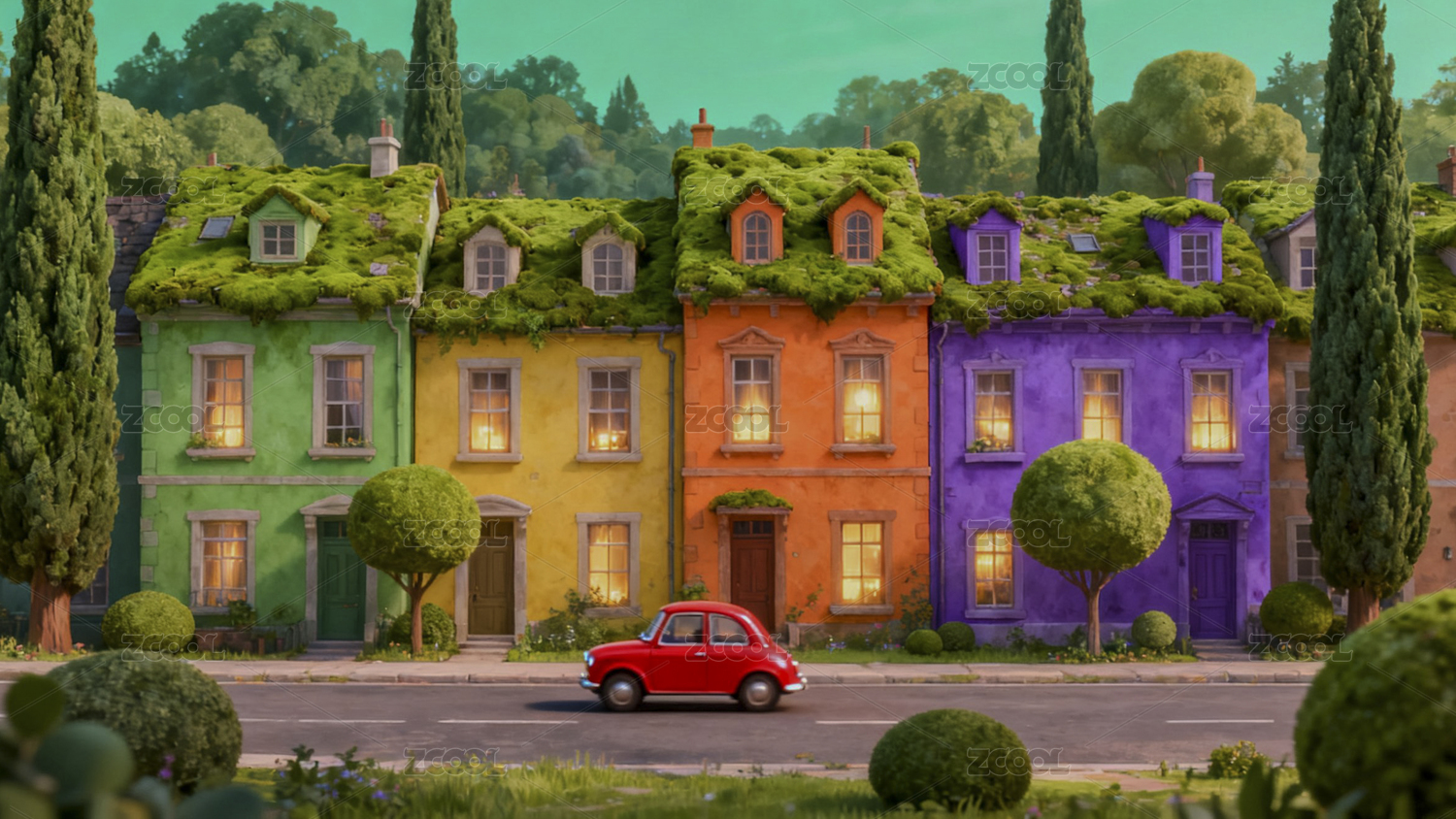 童话小镇,街道,树木,房屋,建筑,城市景观,复古,可爱,宁静,绿意