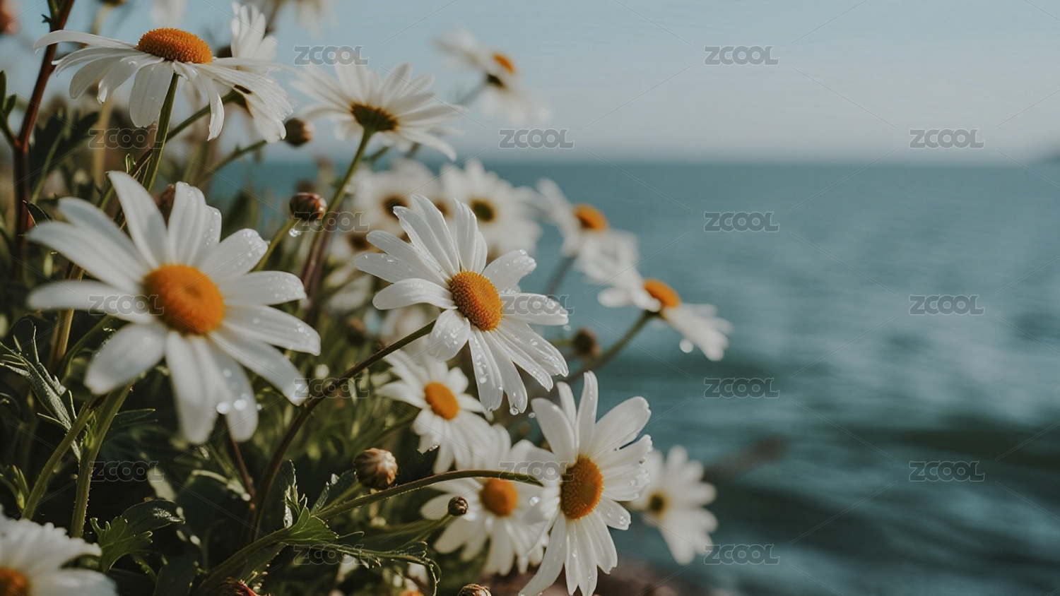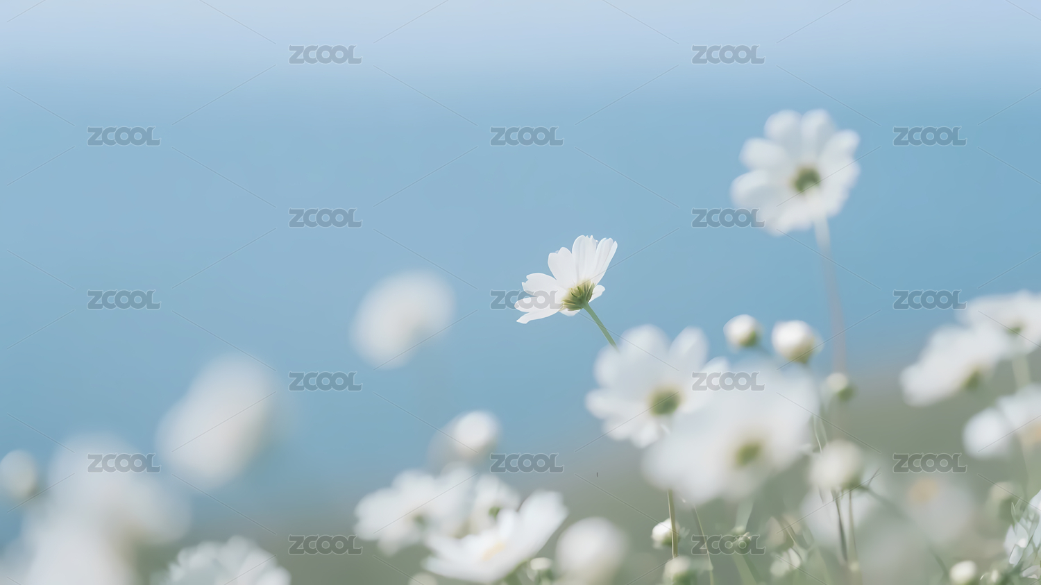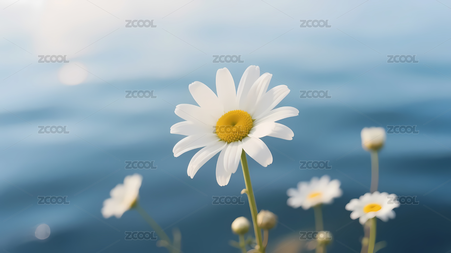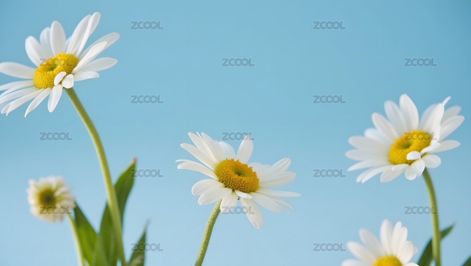 白色雏菊蓝绿渐变背景