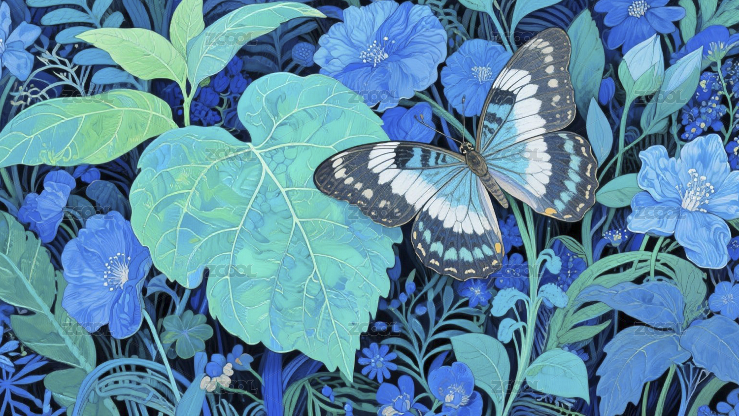 瓢虫,花朵,蓝色,叶子,水彩,绘画,艺术,自然,花园,植物