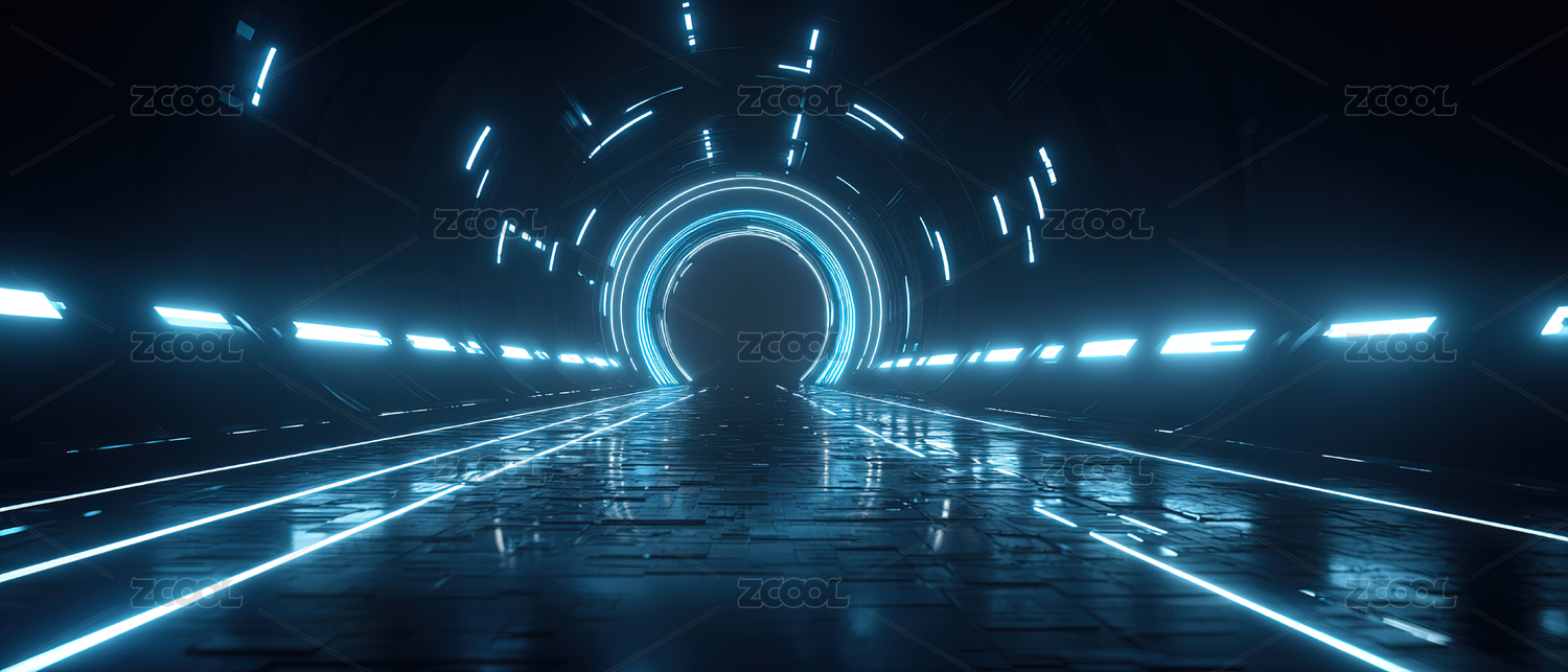 蓝色霓虹隧道的未来科技场景