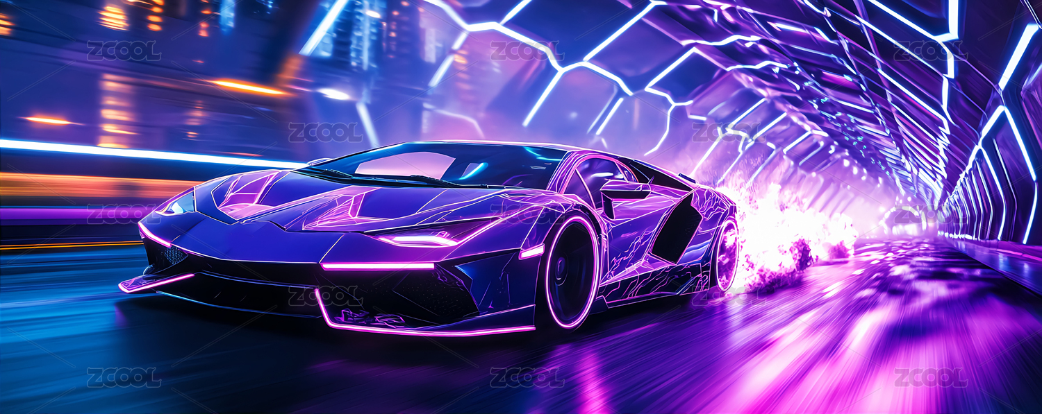 未来,隧道,新能源,汽车,跑车,赛车,三维,场景,霓虹灯,道路