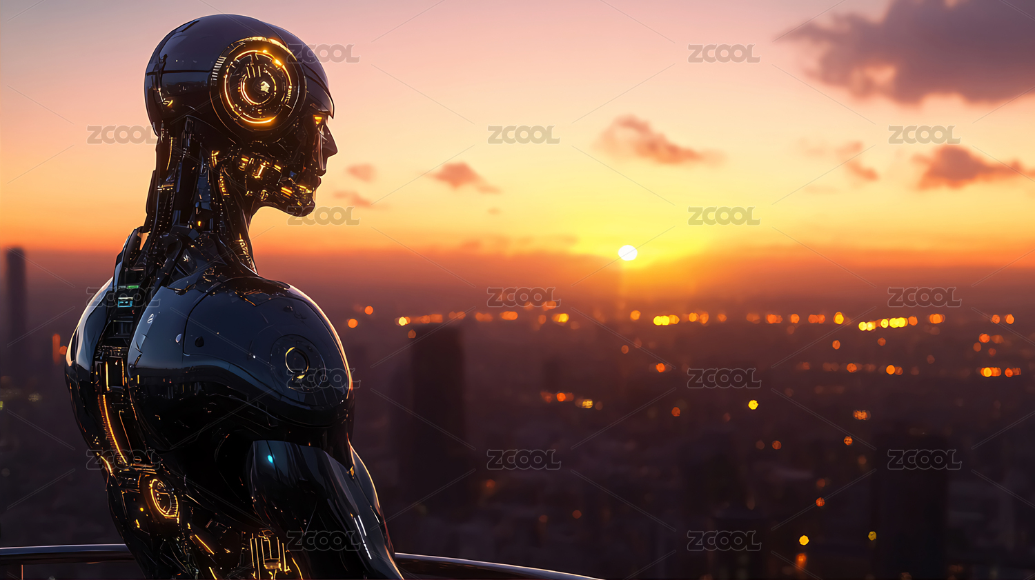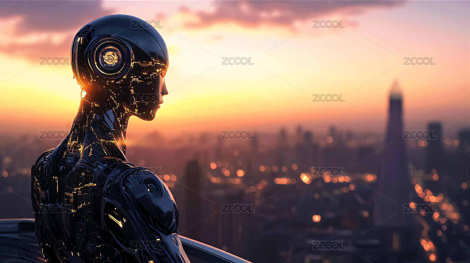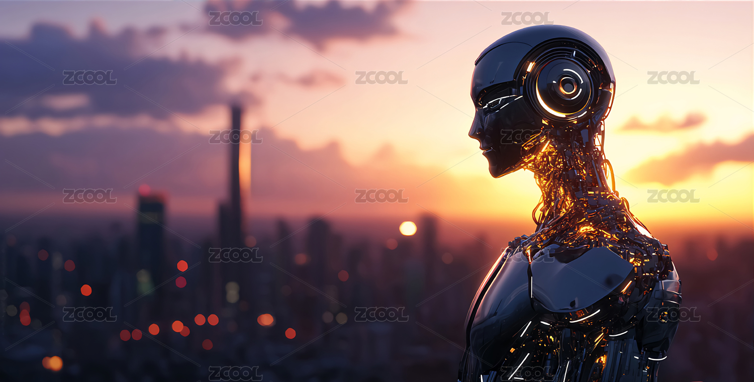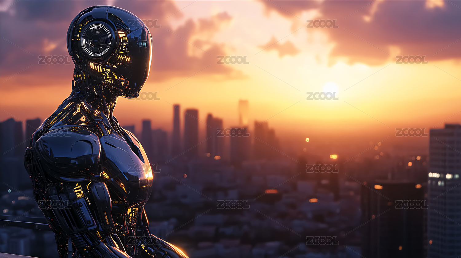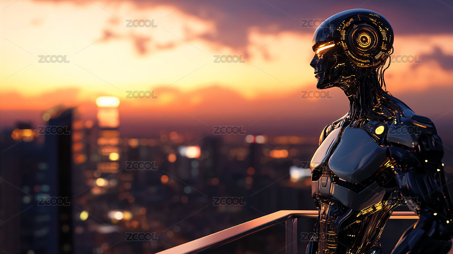 未来,机器人,建筑,城市,天际线,摩天大厦,黄昏,天空,背景,商务
