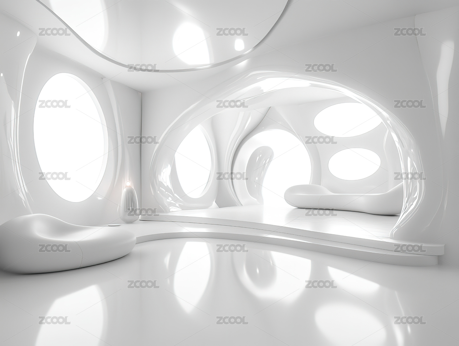 走廊,空间,几何,简洁,明亮,反射,设计,室内,建筑,白色