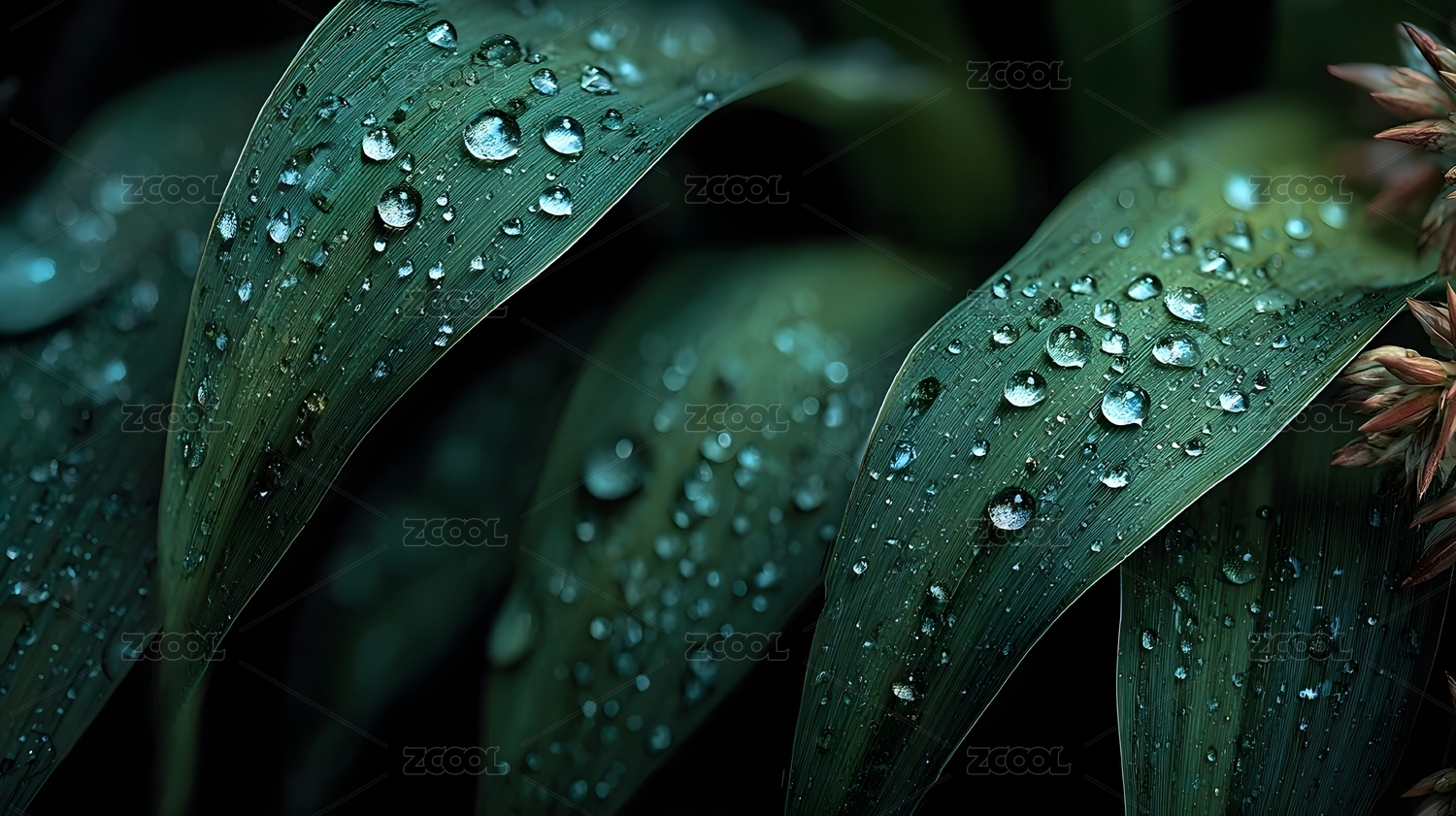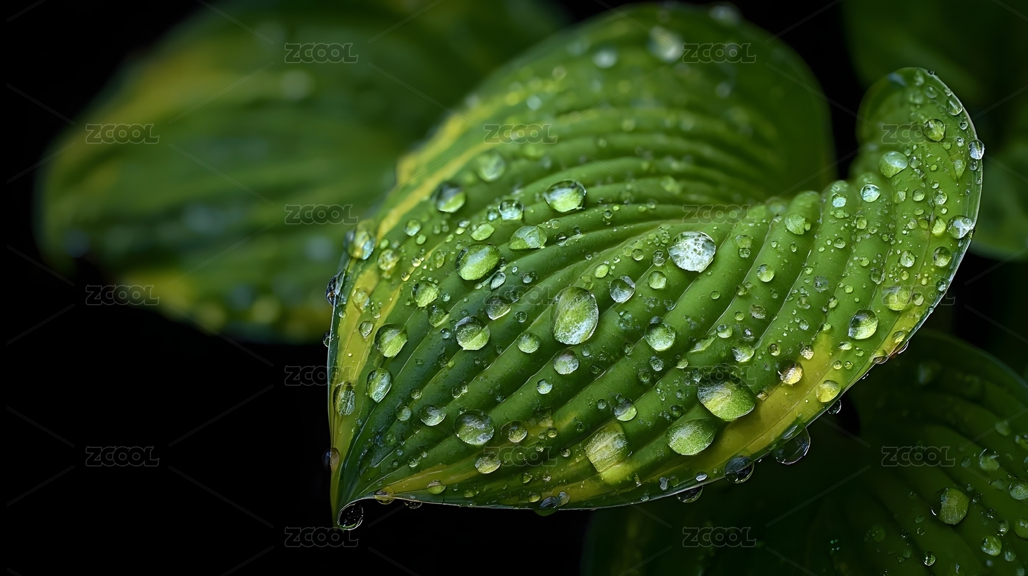 自然,绿色,植物,叶子,露珠,水珠,湿润,叶片,光泽,纹路