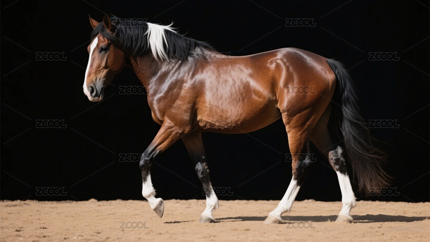 棕色骏马于沙地上行走