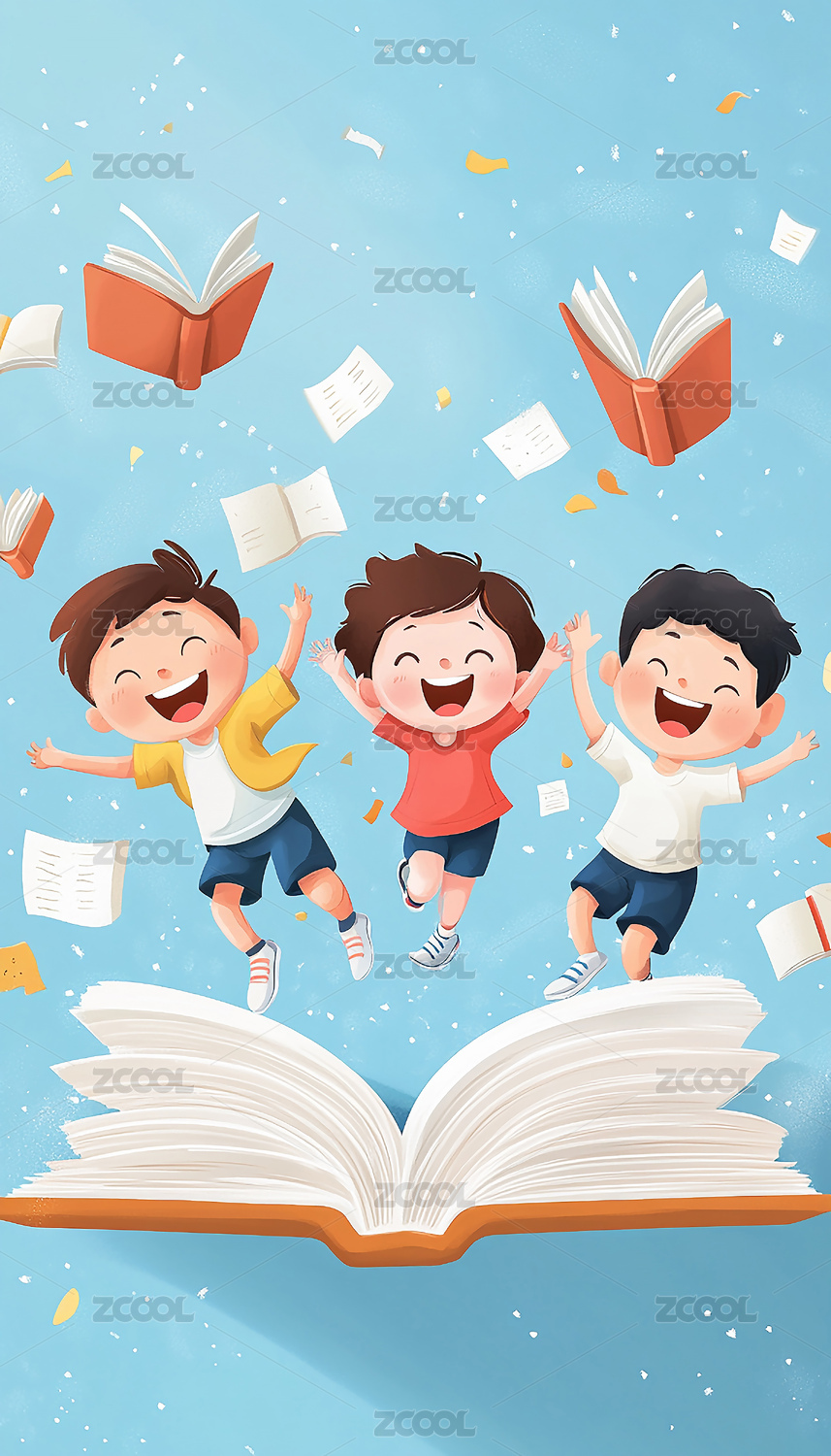 孩子们开心阅读场景插画