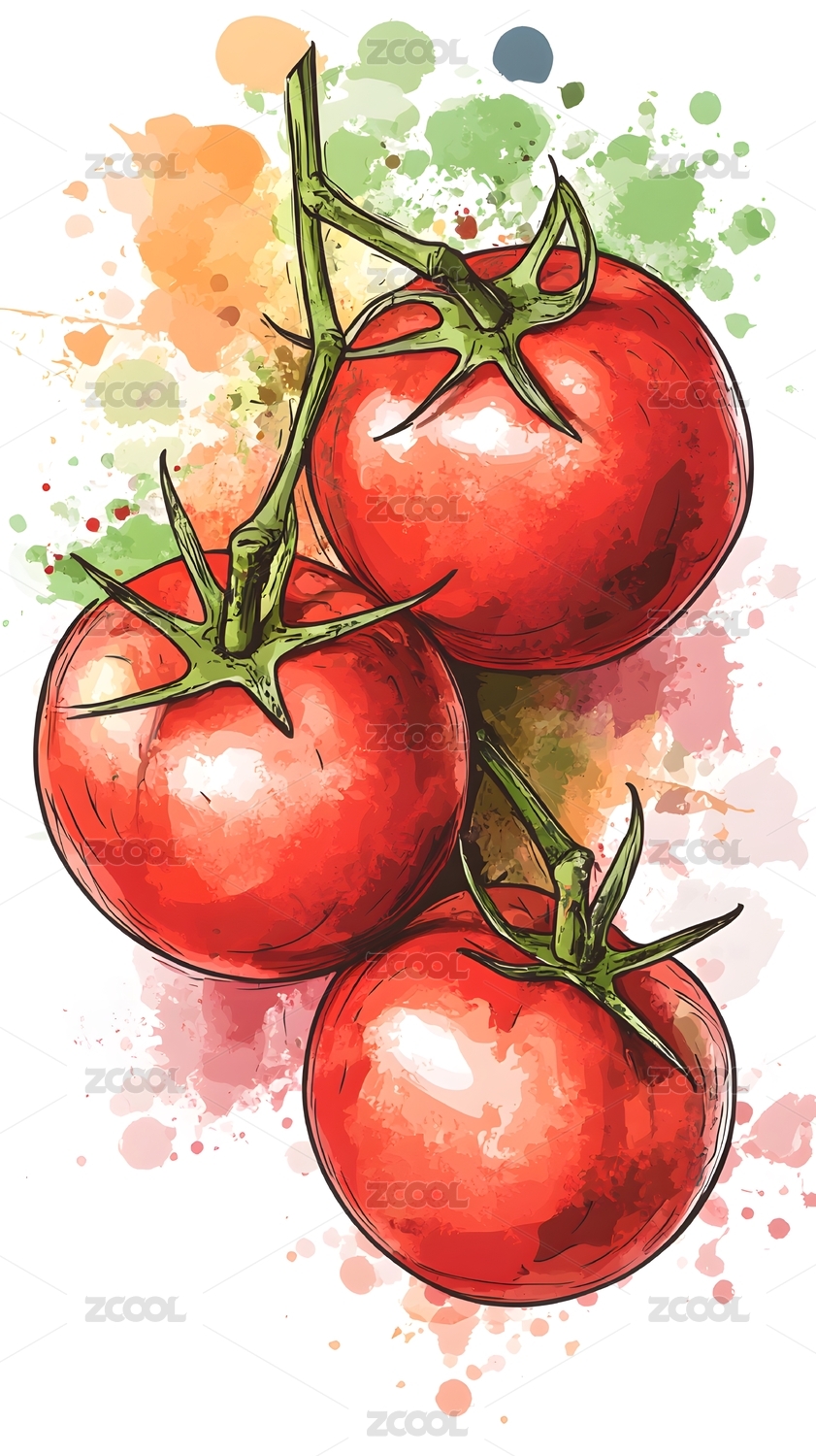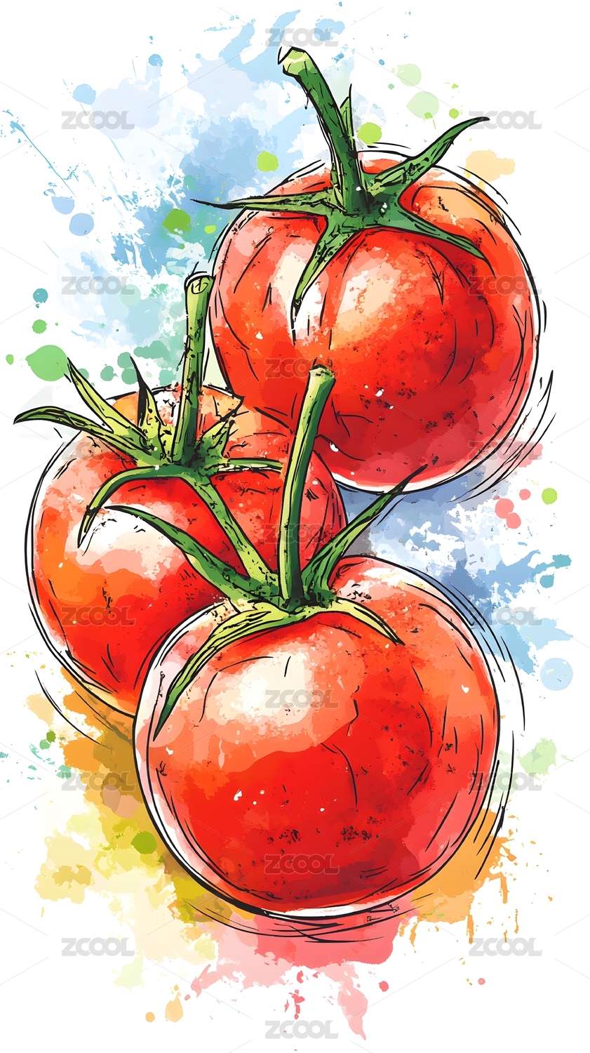 扁平,水彩,蔬菜,番茄,西红柿,素材,插画