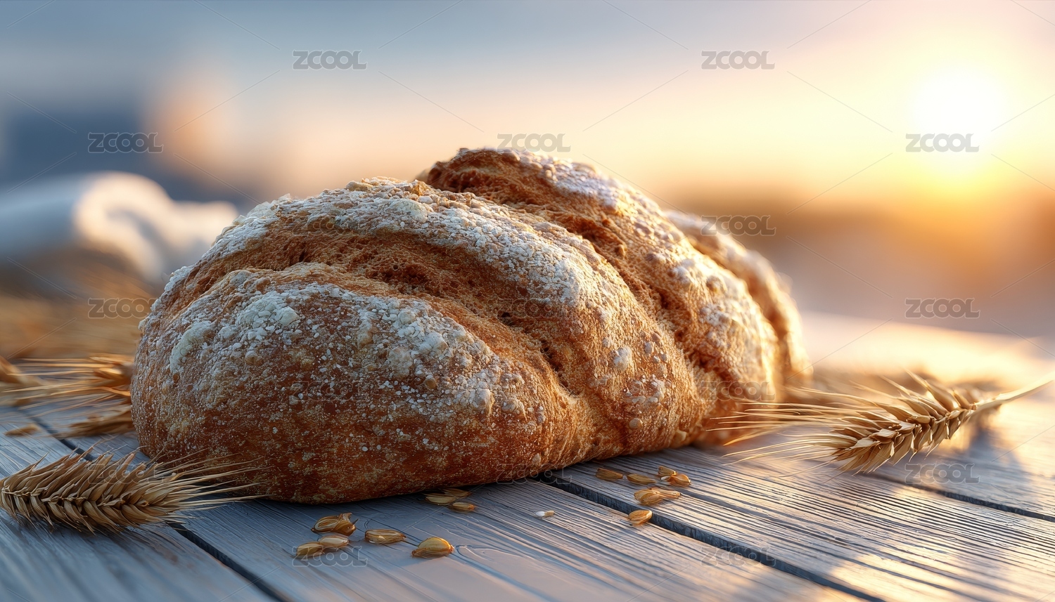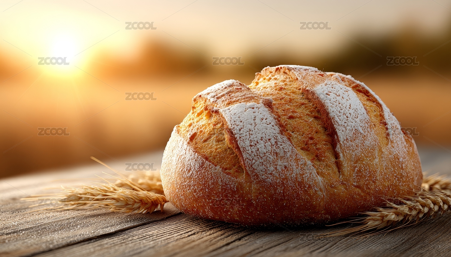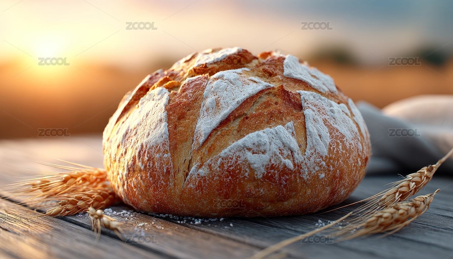 日落下的新鲜面包