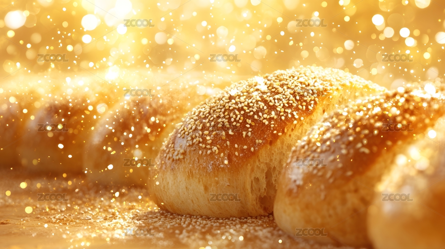 金黄面包上的白芝麻点缀
