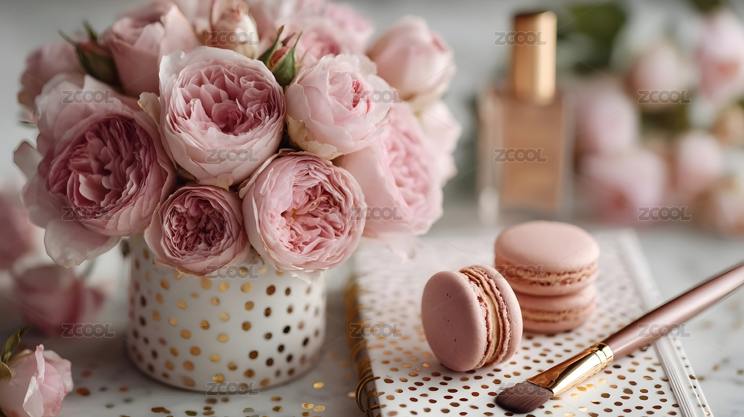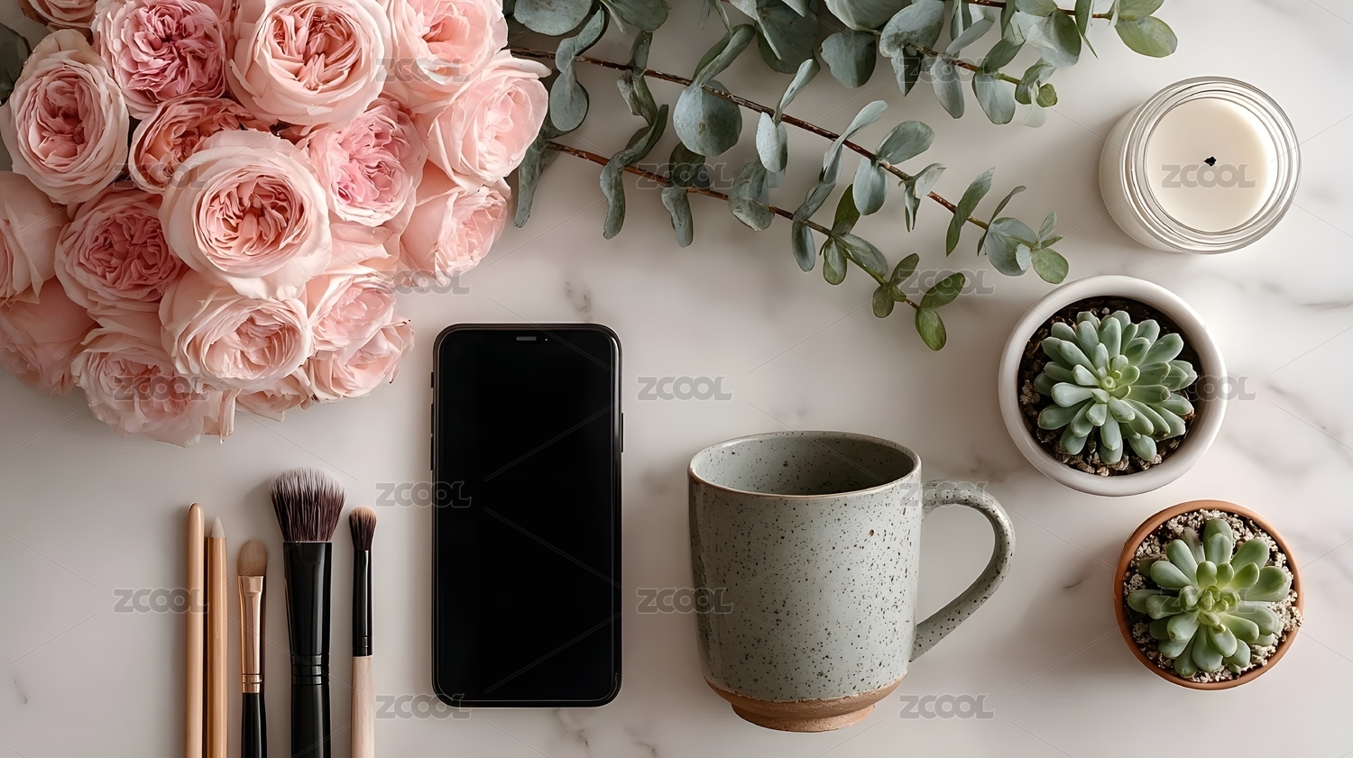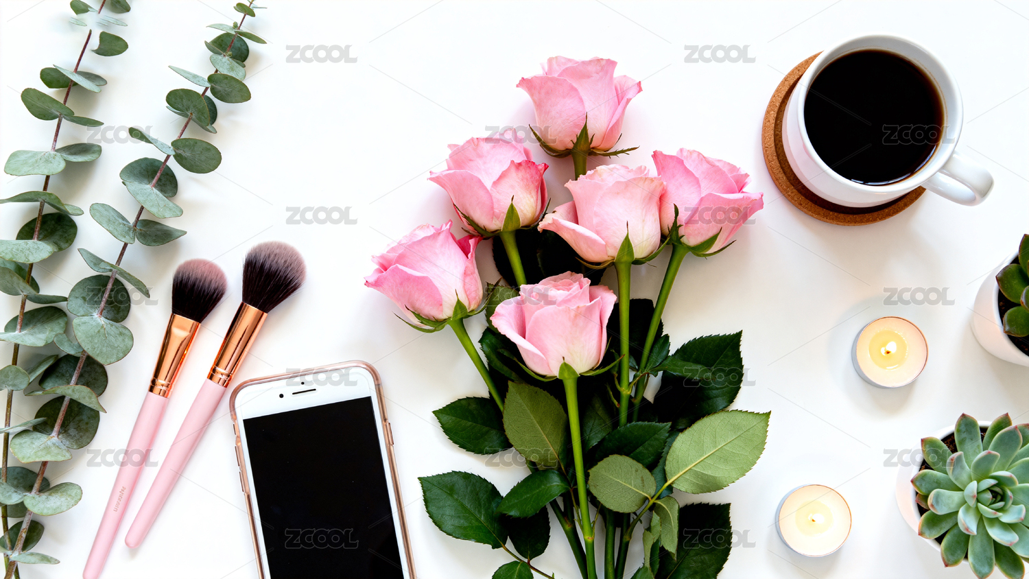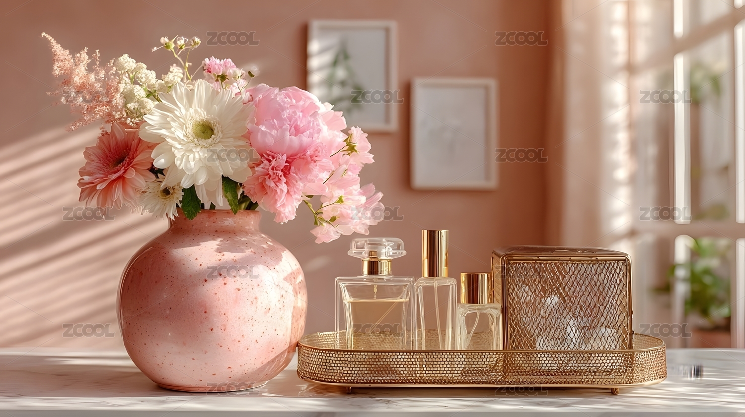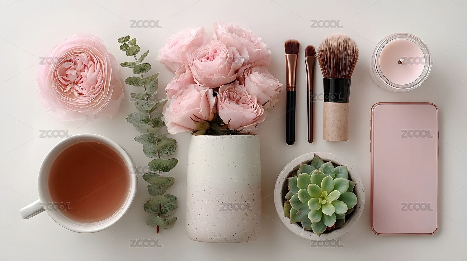 花朵,粉色,花叶,花枝,装饰,白色,花瓶,桌面,陶瓷,石子