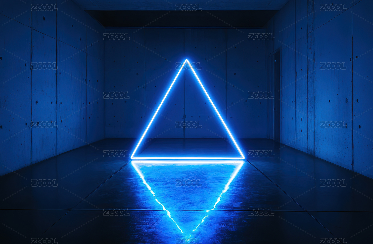 现代,蓝色,抽象,空间,简洁,光线,反射,霓虹灯,地面,未来感