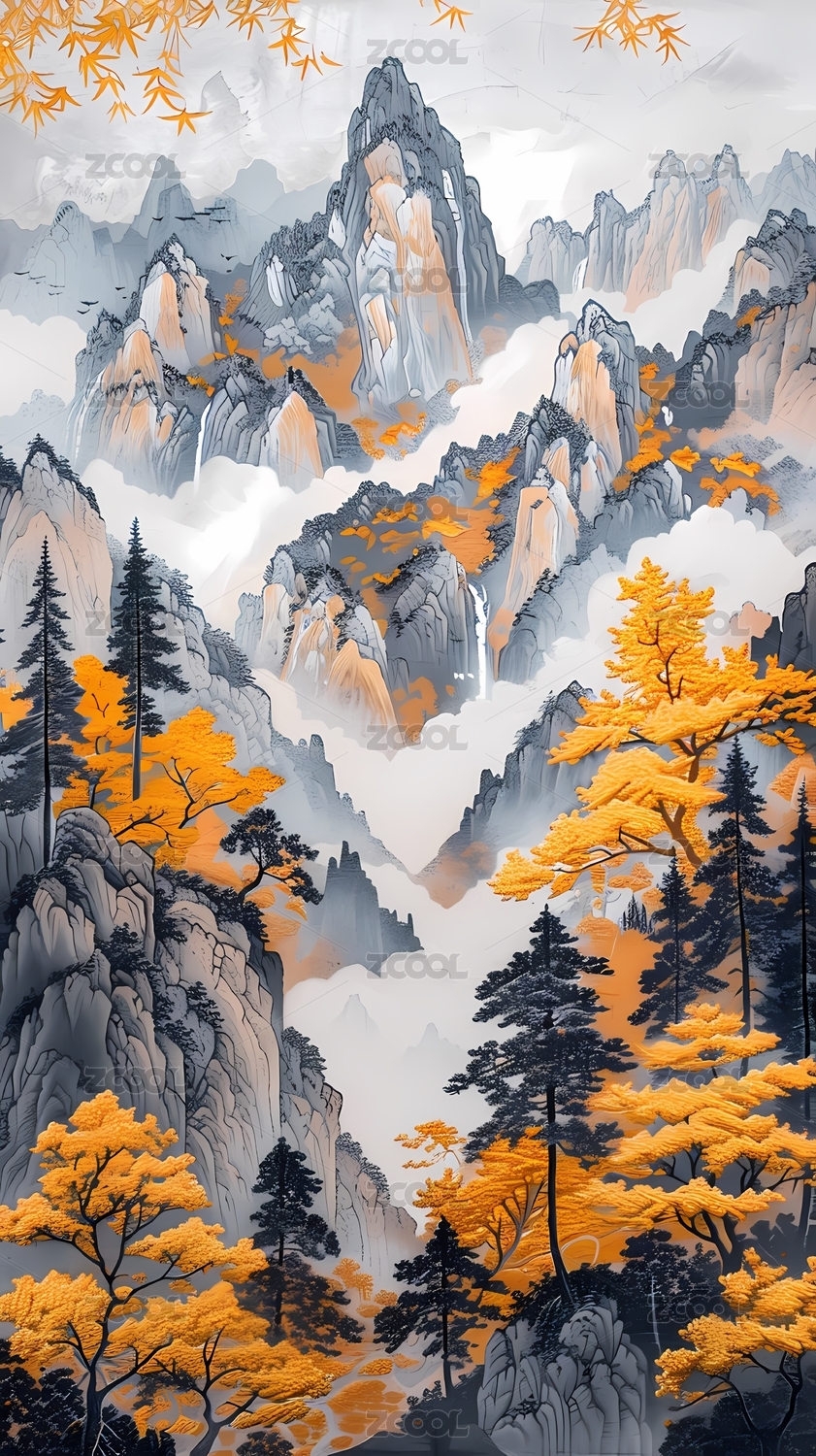 风景,自然,艺术,绘画,静谧,云雾,写意,水墨,金色,意境