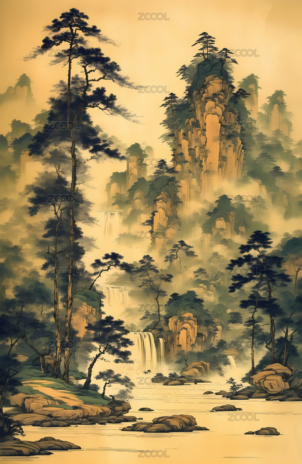 中式山水插画