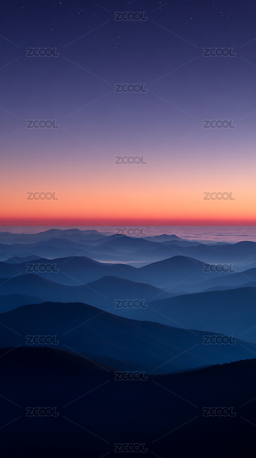 山峦星空剪影,夕阳余晖渲染唯美意境