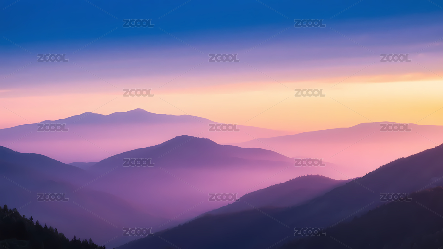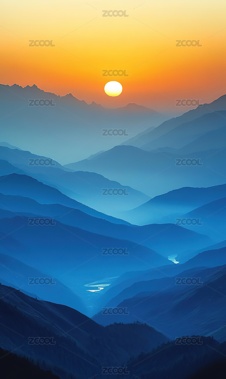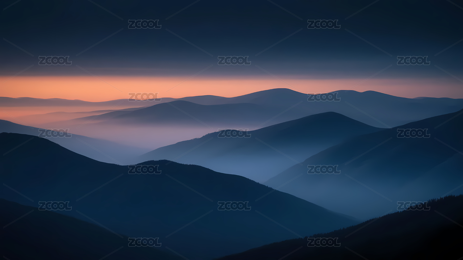 深蓝橙紫渐变山峦