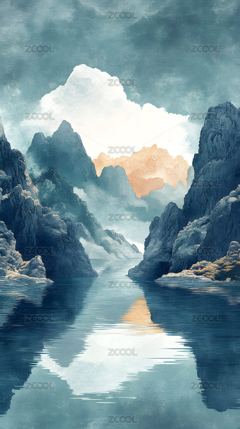 意境,远山,云海,神秘,景色,山峰,峰峦,孤影,国风,抽象