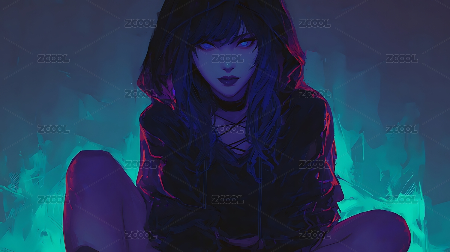 暗黑风格魔法姑娘带着神鸟插画壁纸
