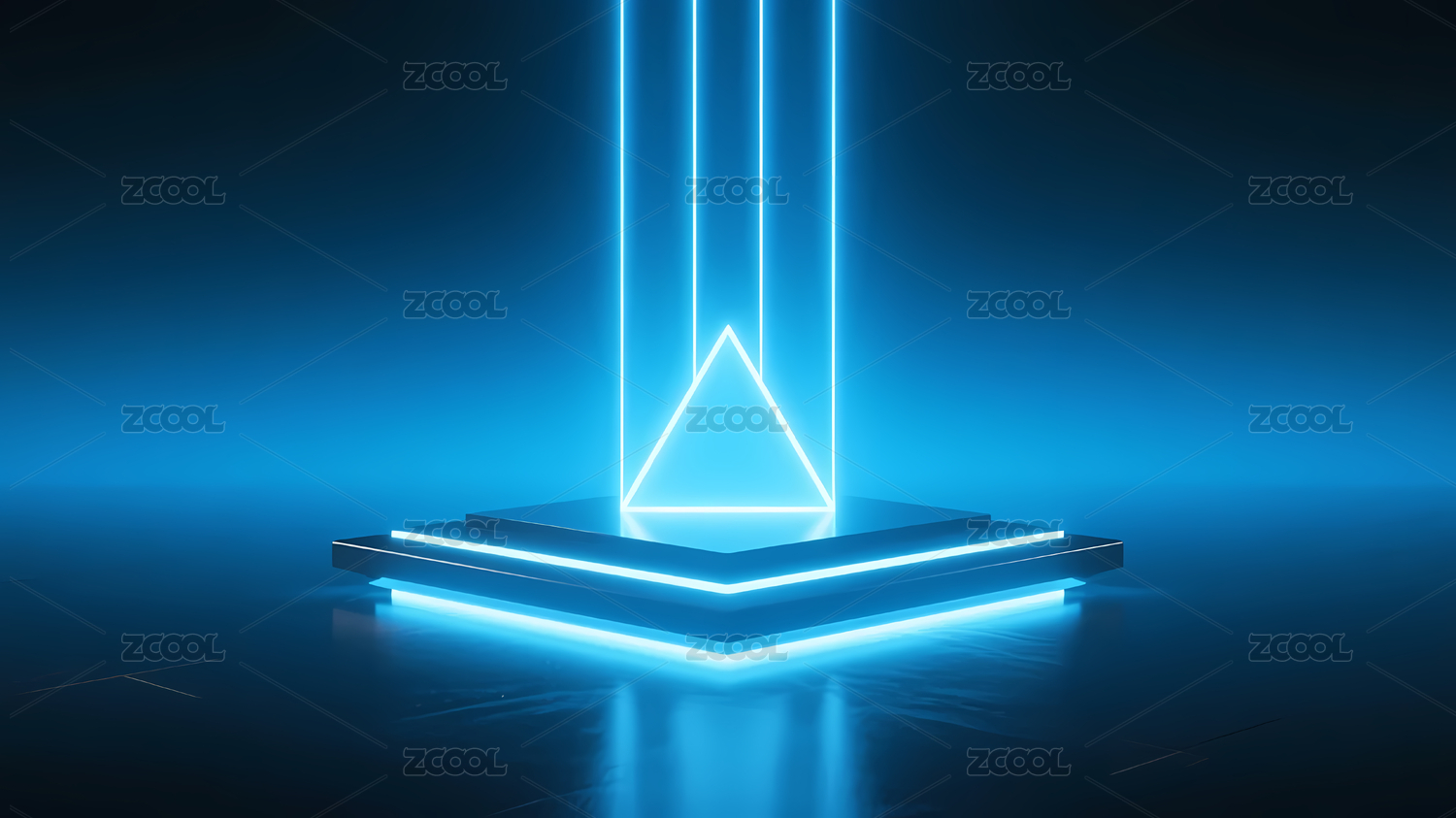 发光三角形与圆形展台