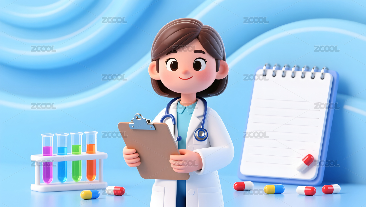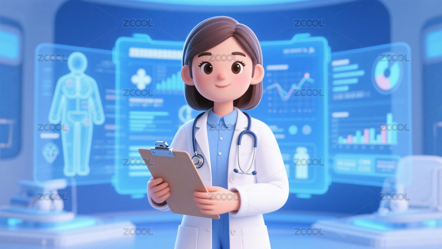 3D女性医生卡通场景
