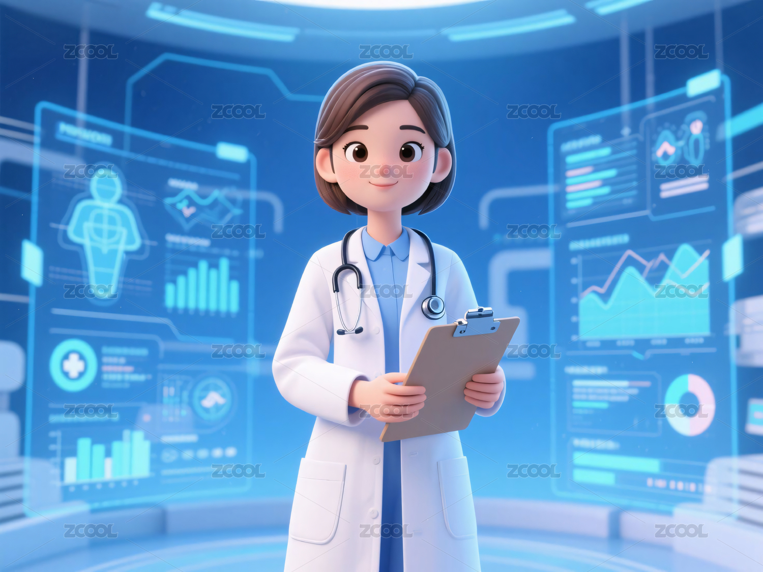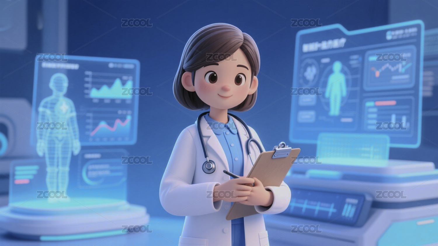 卡通女医生未来医疗科技诊疗