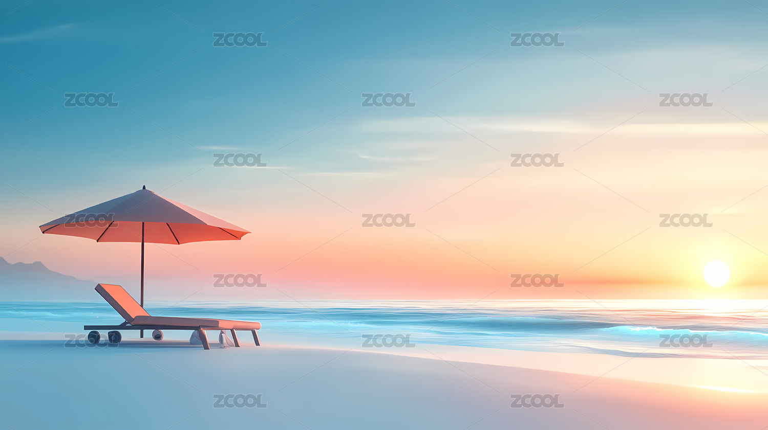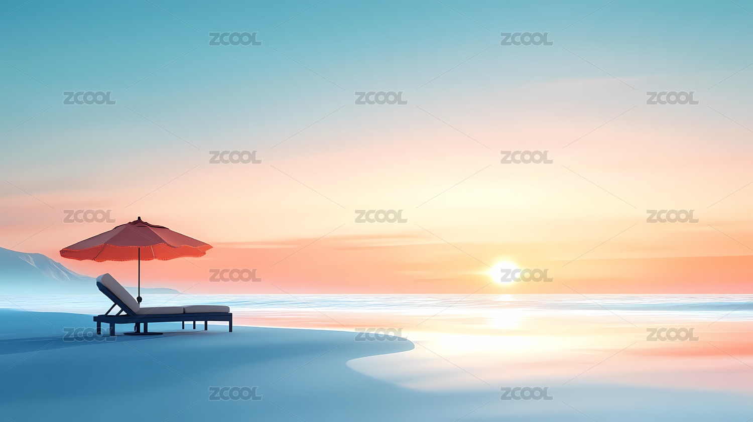 海滩,落日,沙滩椅,遮阳伞,海洋,日落,海岸,度假,休闲,宁静