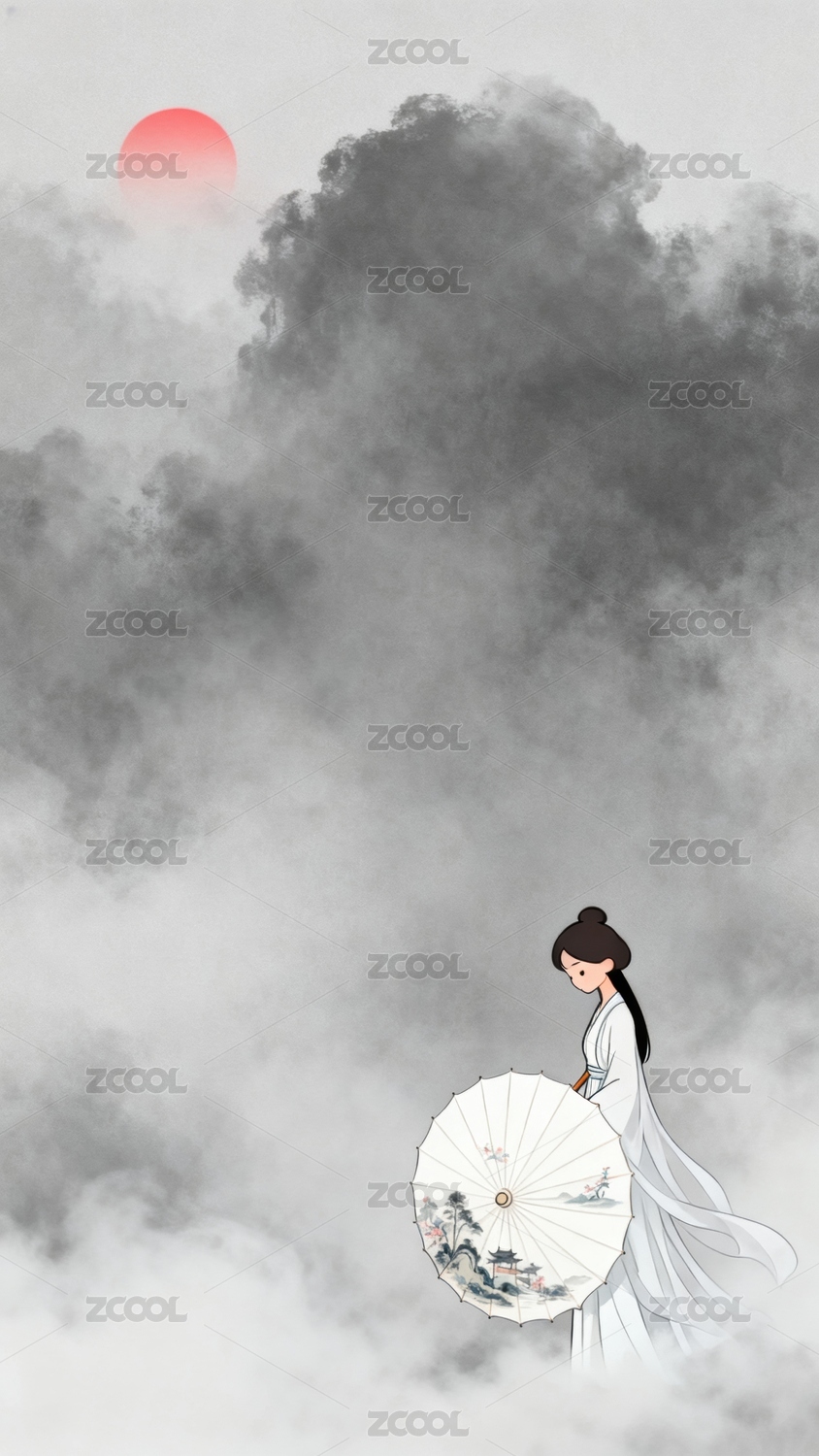 艺术,静谧,淡雅,唯美,汉服,少女,月亮,雾气,朦胧,意境
