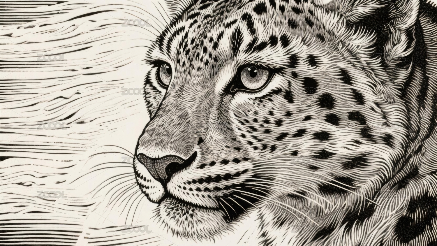 豹头黑白感版画场景