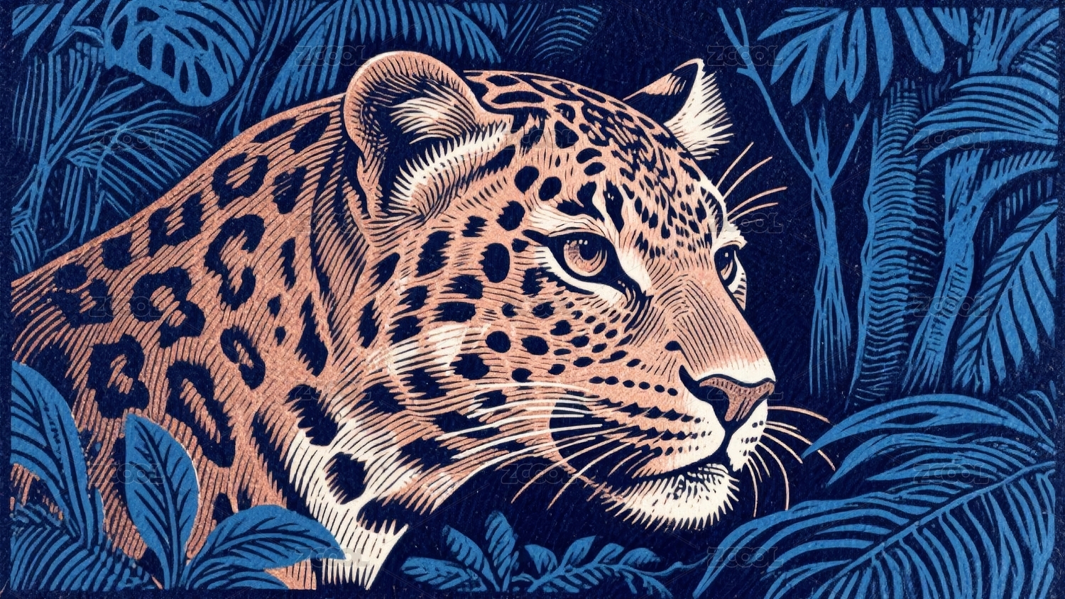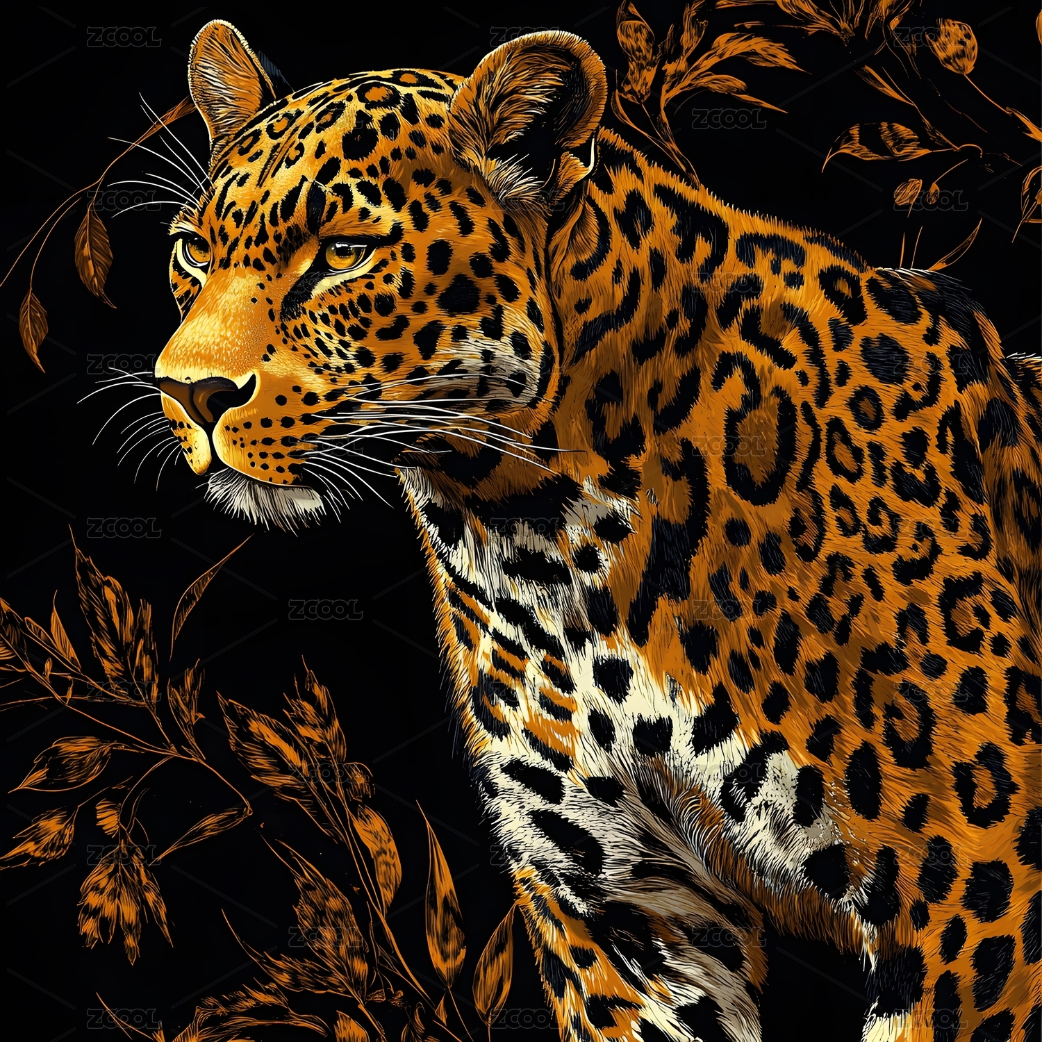 复古金钱豹花纹图案插画