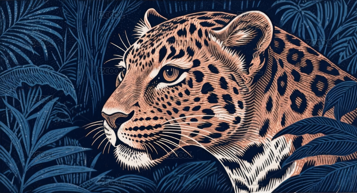 棕榈叶下的美洲豹插画