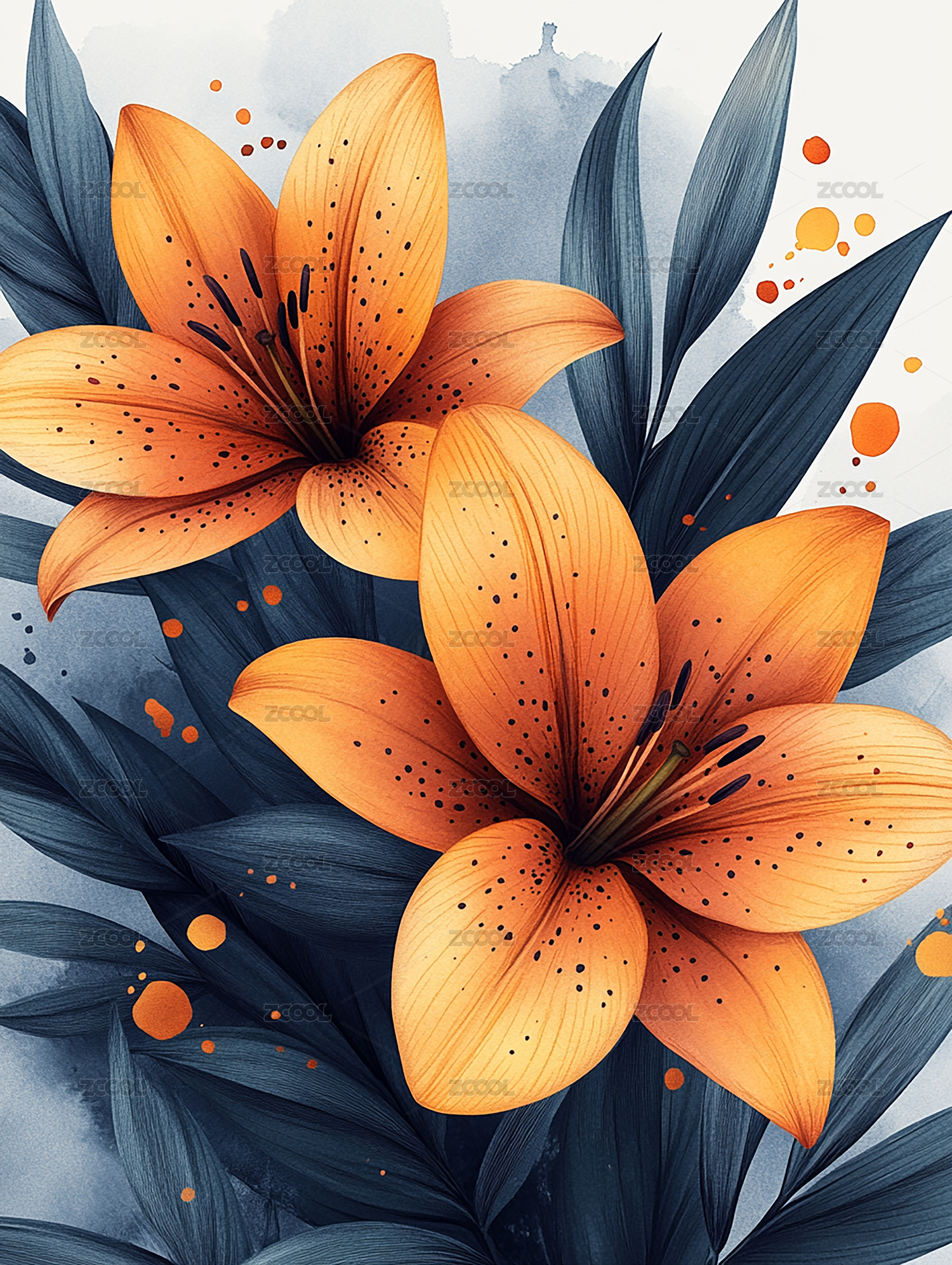橙色百合花图案